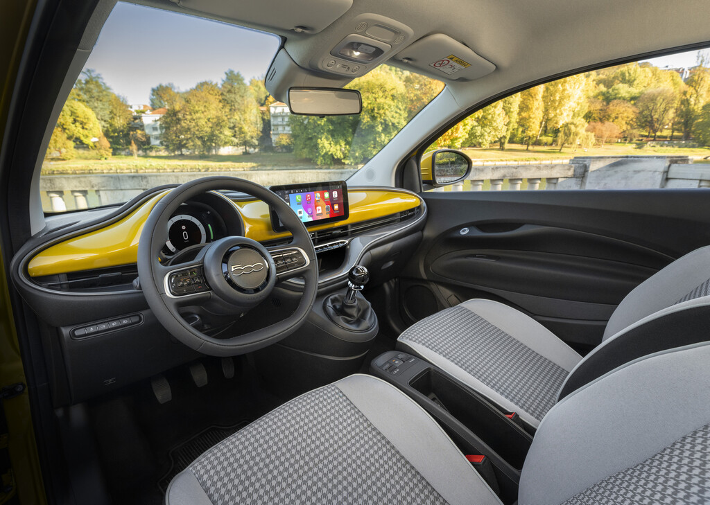 Der Fiat 500 kommt in drei Ausstattungsversionen auf den Markt. Der Pop kommt mit Stahlrädern, schwarzen Stoffsitzen und einer manuellen Klimaanlage zu den Kunden. Die Variante Icon (21.990 Euro) rollt auf Leichtmetallrädern, dem 10,25 Zoll großen Bildschirm und einem Tempomat auf den Markt. In der Top-Version La Prima (24.990 Euro) sitzen Fahrer und Passagier auf Kunstledersitzen, die sich beheizen lassen, und ein vollständiges Assistenzprogramm rundet die Ausstattung ab. Zum Start steht auch die Einführungsversion 500 Hybrid Torino (nomen est omen) für 21.990 Euro bei den Händlern. Neben der Limousine runden wie bisher ein Cabrio (Aufpreis 3000 Euro) und die Variante 3 plus 1 mit einer hinteren Tür auf der Beifahrerseite die Palette ab. (aum)