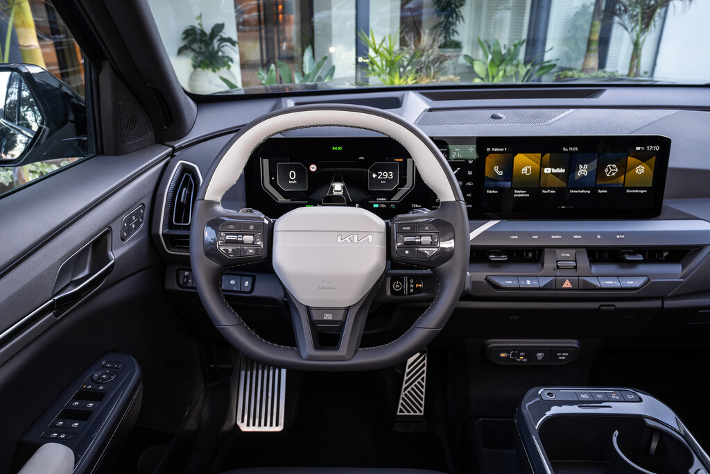 Bei den Preisen bewegt sich der Kia EV5 auf Augenhöhe mit der Konkurrenz. Die Basisversion „Air“ startet bei 45.990 Euro und bringt bereits 18-Zoll-Felgen, Navigation, Zweizonen-Klimaautomatik, Rückfahrkamera, Smart-Key und umfangreiche Assistenzsysteme inklusive Autobahnassistent mit. Die mittlere Linie „Earth“ (ab 48.990 Euro) ergänzt 19-Zoll-Räder, 3-Zonen-Klimaautomatik, Wärmepumpe, beheizbares Lenkrad, elektrische Sitze und eine sensorgesteuerte Heckklappe. Die Topversion „GT-Line“ (ab 51.990 Euro) setzt neben den schwarzen Akzenten auf Komfortfeatures wie Massagesitz, Harman/Kardon-Soundsystem, Ambiente-Licht und V2L-Funktion. Unabhängig von der Ausstattungslinie bleibt Kias Sieben-Jahres-Garantie ein starkes Argument, gerade im Elektro-Segment, in dem viele Käufer auf langfristige Sicherheit setzen.