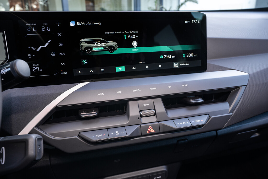 Auch technisch muss man Abstriche machen. Zwar setzt der EV5 auch auf die E-GMP-Plattform, verzichtet jedoch auf die 800-Volt-Architektur der größeren Brüder EV6 und EV9. Das bedeutet für die 81,4 kWh große Batterie mit maximal 150 kW Ladezeiten von rund 30 Minuten für 10 bis 80 Prozent. Klassenüblich zwar, aber nicht herausragend. Auch die Reichweite bleibt eher realistisch als rekordverdächtig: mit 18-Zoll-Rädern sollen bis zu 530 Kilometer möglich sein, der von uns gefahrenen GT-Line mit 19-Zoll-Bereifung soll schon 25 Kilometer früher der Saft ausgehen. Auch hier schafft es der kleinere EV3 mit identischem Akku gut 100 Kilometer weiter. Nach unserer Probefahrt bei frühlingshaften Temperaturen von 16 Grad in und um Barcelona mit vielen bergigen Passagen pendelte sich der Verbrauch bei 23,4 kWh pro 100 Kilometer ein – kein Spitzenwert, aber angesichts von Größe und Gewicht immer noch im Rahmen.