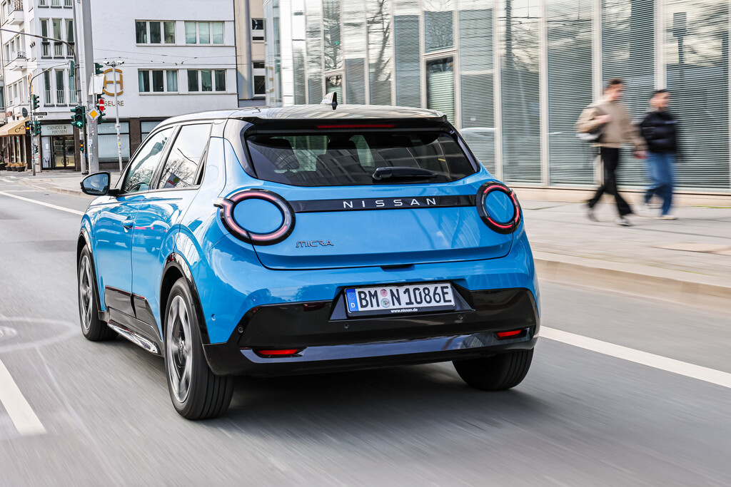 Zum Schluss die Preise: Der Micra in der Grundaussttatung Engage mit 90 kW, 40-kWh-Akku und 317 Kilometern Reichweite startet ab 27.990 Euro, immerhin schon inklusive schlüssellosem Zugang, Klimaautomatik mit Fern-Vorklimatisierung und Wärmepumpe, wenn auch noch mit Stahlfelgen. Der Micra Advance inklusive 10,1 Zoll-Fahrerdisplay, One-Pedal-Stop-Funktion und integrierte Google-Dienste sowie mit 110 kW und 52-kWh-Batterie kostet ab 32.990 Euro. Die Topversion Evolve, unter anderem mit V2L-Adapter für das externe Aufladen elektrischer Gerät, Premium-Soundsystem, Sitzheizung, Zweifarblackierung und 18-Zoll-Leichtmetallräder steht mit 34.900 Euro in der Liste. Privatkunden gewährt Nissan bei Vertragsabschluss bis 31. März einen Bonus von 3600 Euro. Wer dazu noch in den vollen Genuss der staatlichen Förderung von bis zu 6000 Euro kommt, kann bei Kauf, Leasing oder Finanzierung also bereits für 18.390 Euro in den Nissan Micra einsteigen.(aum)