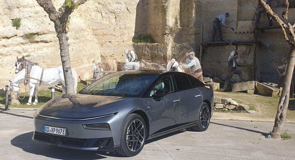 Das ist schade, weil der übrige Eindruck des Autos in Bewegung durchaus stimmig ausfällt. Für den ersten Fahreindruck stand die Long-Range-Version mit Heckantrieb bereit. Deren Elektromotor leistet 230 kW beziehungsweise 313 PS und bewegt die große Limousine mit erfreulicher Souveränität. Der Vortrieb setzt spontan ein, bleibt aber angenehm dosierbar. Das Auto wirkt nie hektisch, sondern eher gelassen kräftig. Diese Form der Leistungsentfaltung passt ausgezeichnet zum Format: schnell genug für müheloses Reisen, kräftig genug für zügige Zwischenspurts, ohne ständig sportliches Theater veranstalten zu wollen.