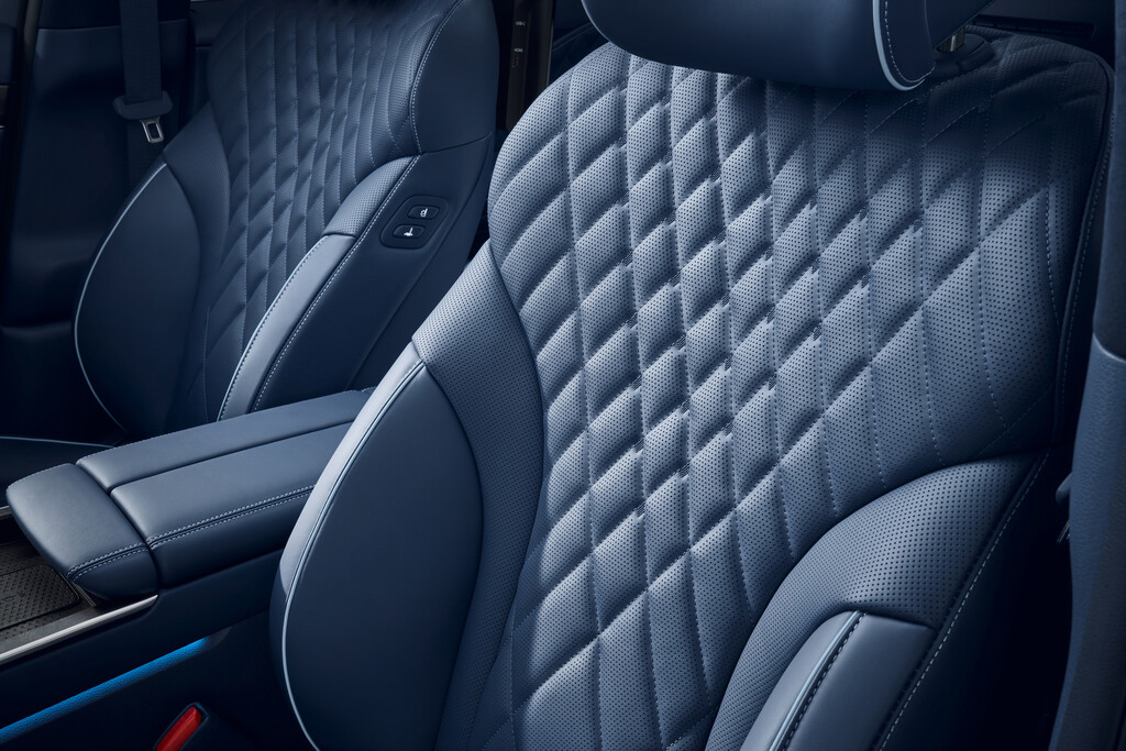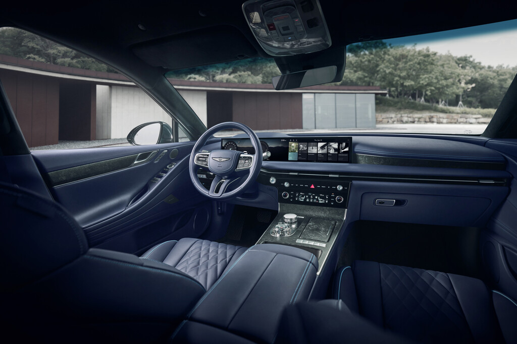 Im Interieur gibt es neue Komfortsitze, eine andere Lenkradgestaltung und elektrisch bedienbare Sonnenblenden im Fond. Das neue Infotainmentsystem mit 27-Zoll-OLED-Bildschirm fügt sich mit dem Kombiinstrument zu einem nahtlosen Panoramadisplay zusammen. Ebenfalls serienmäßig an Bord ist unter anderem ein „Bang & Olufsen“-Soundsystem mit 17 Lautsprechern. Der Digital Key 2.0 ermöglicht den Zugang zum Fahrzeug via Fingerabdruck-Authentifizierung.