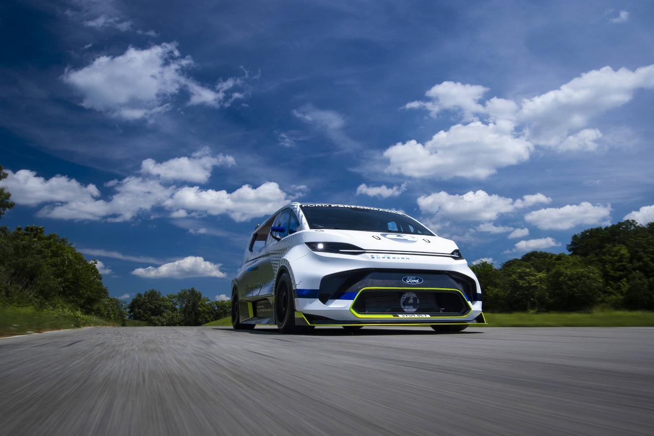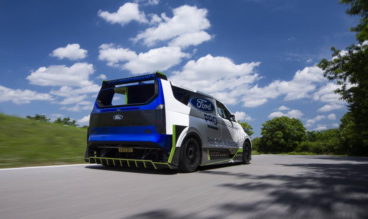 Den Ford Pro Electric Supervan, den in Goodwood der zweifache Le-Mans-Sieger Romain Dumas über die rund 1,9 Kilometer lange Bergstrecke pilotiert, ist mit einem FIA-konformen Innenraum ausgestattet. Über den Touchscreen stehen fünf Fahrprogramme zur Wahl. Sie definieren jeweils eine andere Drehmomentverteilung an die vier angetriebenen Räder und beeinflussen die Rekuperation: Road, Track, Drag(ster), Drift und Rally.