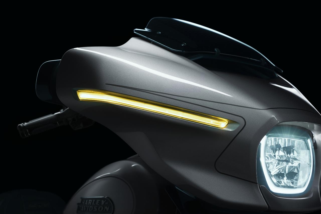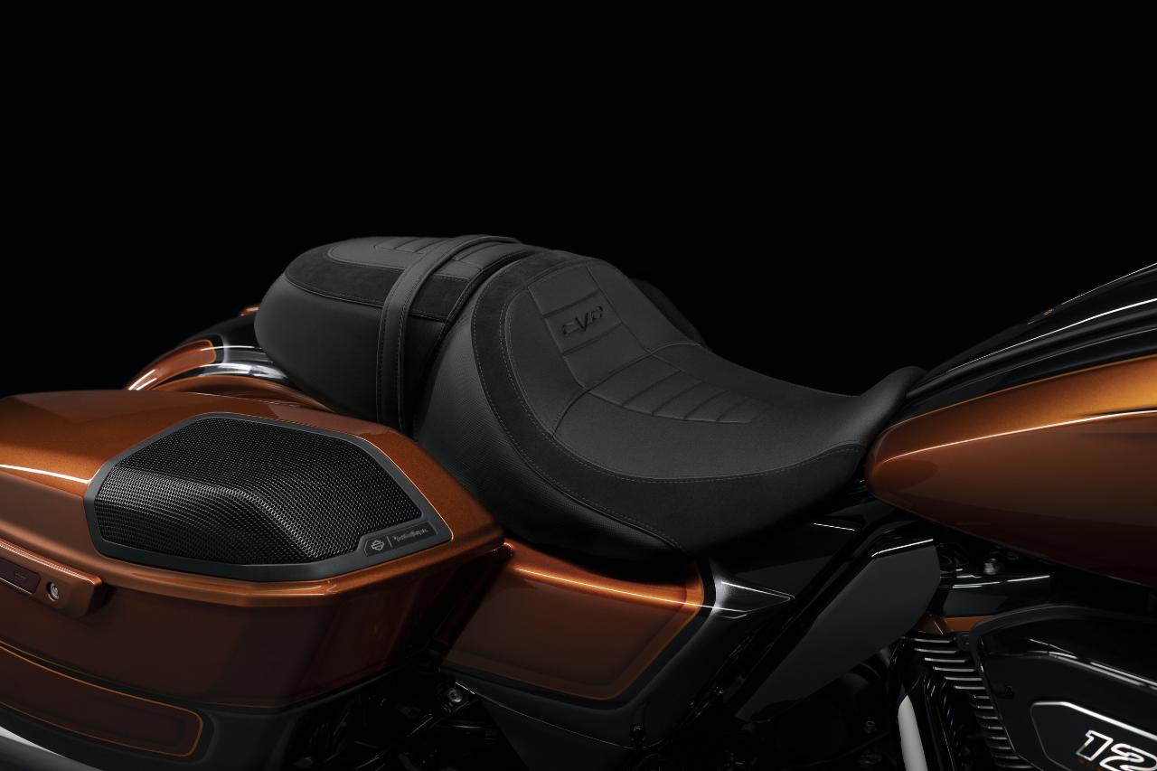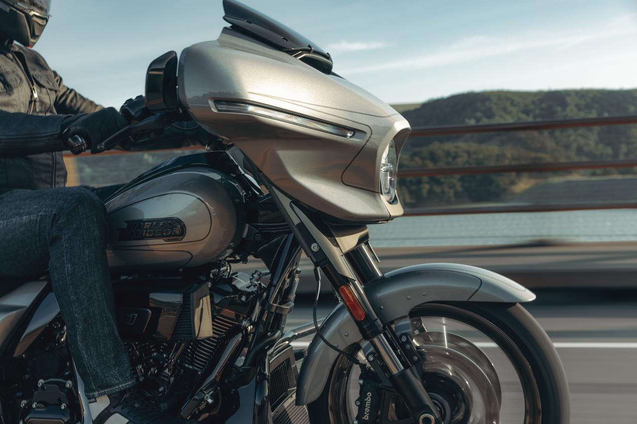 Die neuen Modelle verfügen über optimierte Verkleidungen mit integrierten Belüftungsöffnungen und Signature-LED-Lichtquellen inklusive integrierter Blinker. Das Vorderschutzblech ist sehr schlank, der Tank fasst 22,7 Liter und seine oberen Kanten bilden eine optische Linie zu den serienmäßigen Seitenkoffern. Trotz des größeren Motors wiegen die CVO Street Glide und CVO Road Glide bis zu 15 Kilogramm weniger als die Vörgängermodelle.