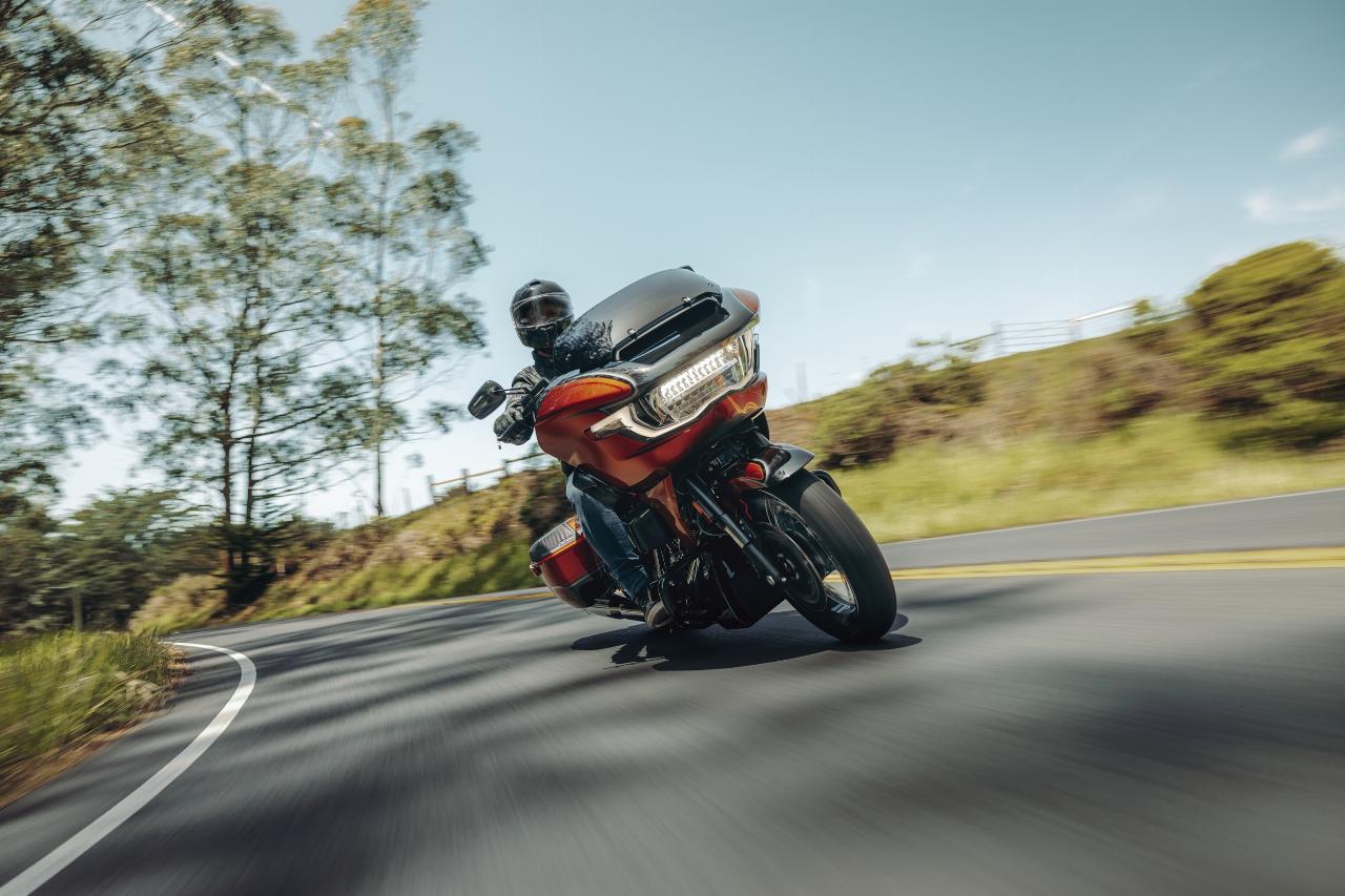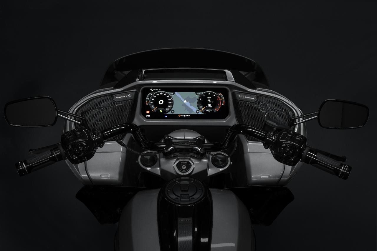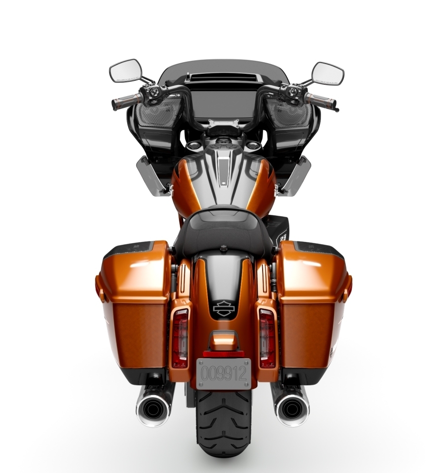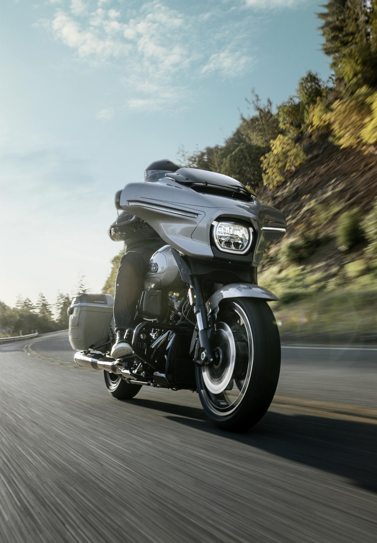 Die neuen Modelle verfügen über optimierte Verkleidungen mit integrierten Belüftungsöffnungen und Signature-LED-Lichtquellen inklusive integrierter Blinker. Das Vorderschutzblech ist sehr schlank, der Tank fasst 22,7 Liter und seine oberen Kanten bilden eine optische Linie zu den serienmäßigen Seitenkoffern. Trotz des größeren Motors wiegen die CVO Street Glide und CVO Road Glide bis zu 15 Kilogramm weniger als die Vörgängermodelle.