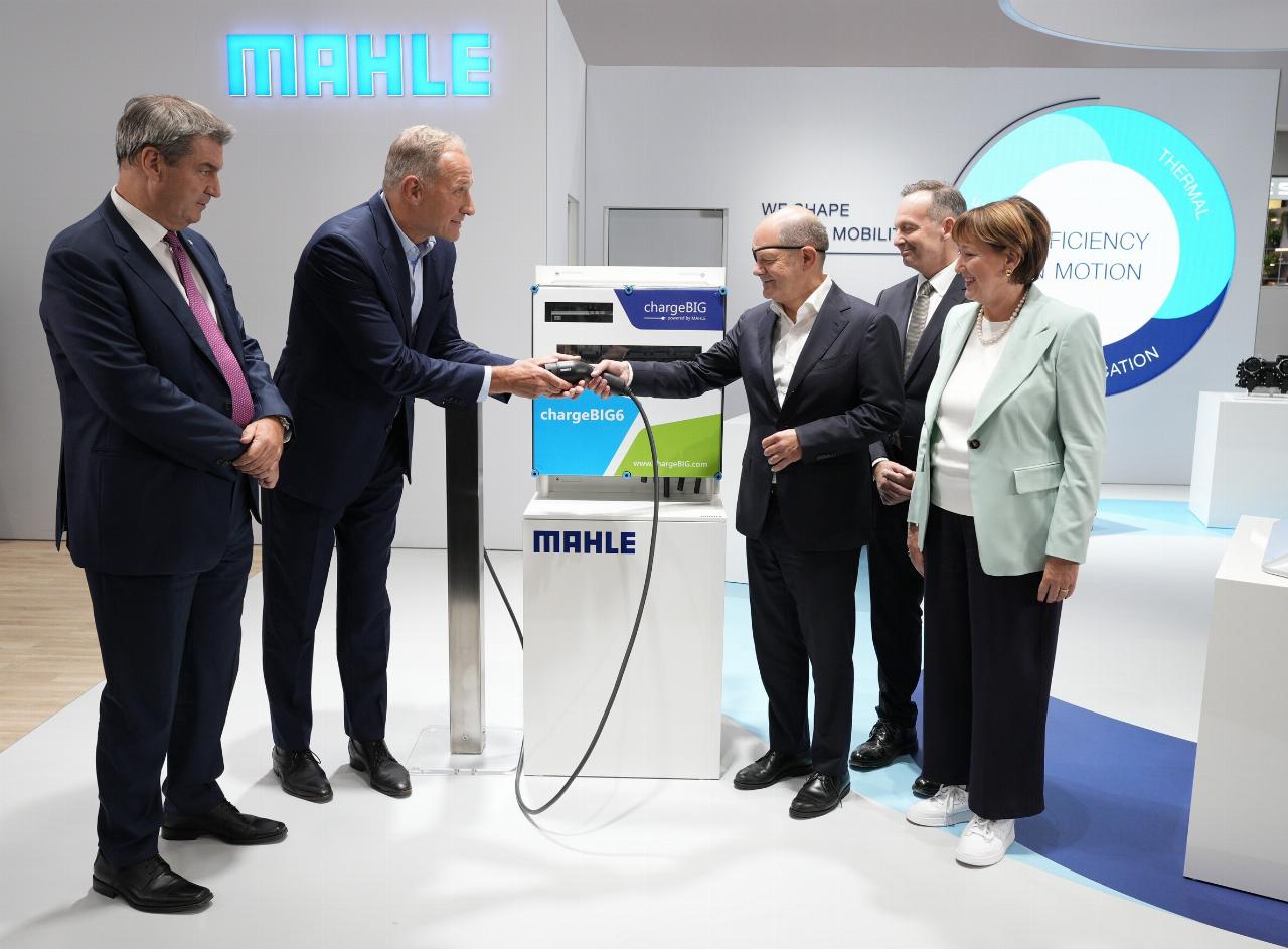 Bundeskanzler Olaf Scholz hat bei seinem traditionellen Eröffnungsrundgang auf der IAA Mobility in München heute auch den Stand von Mahkle besucht. Dort informierte er sich über über smarte Elektroauto-Ladelösungen für Unternehmen, Städte und Wohnanlagen. Konzernchef Arnd Franz plädierte für Technologievielfalt. „Für Mahle ist E-Mobilität gesetzt. Als System-Champion elektrifizieren wir alles, was Räder hat. Für schnell wirksamen Klimaschutz brauchen wir alle Technologien ohne ideologische Vorgaben." Mit Blick auf den Standort Deutschland sagte Franz: „Die Transformation der Autoindustrie in Deutschland muss gelingen. Dafür brauchen wir neben klugen Ideen auch attraktive Standortbedingungen.“