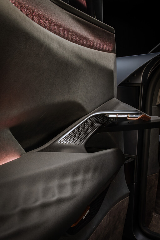 Das Interieur mit minimalistischem Gaming-Lenkrad wirkt beinahe freischwebend. Die Sitze sind an der Mittelkonsole aufgehängt. Zentrales Bedienelement des Viersitzers ist ein 24 Zoll großes frei stehendes Display. Als Schalter für viele Funktionen wie Fahrmodi oder Licht dient ein Glasprisma. Für den Innenraum wurde viel Bio-Material verwendet. (aum)