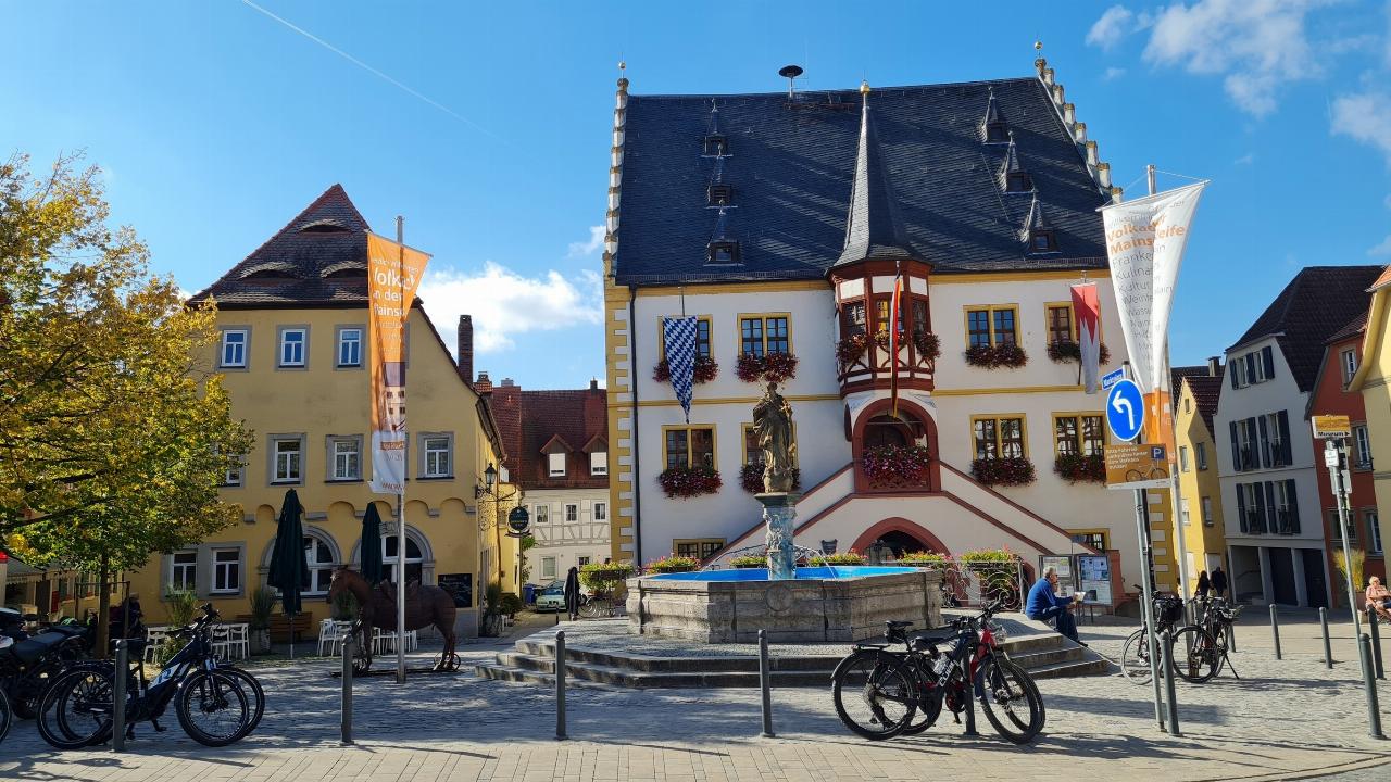 Gleich dahinter weitet sich der Marktplatz mit dem barocken Rathaus, die Industriestadt, in der früher Fichtel und Sachs zu Hause war, beherbergt heute große Fabriken, unter anderem von ZF. Immerhin: Hier wurden die das Tretkurbelfahrrad, die Kugelschleifmaschine (wichtig für Kugellager), der Fahrradfreilauf und die Rücktrittbremse erfunden. Und 1920 entwickelte Fritz Stöcklein den modernen Fußball wie wir ihn heute kennen, mit einem Rückschlagventil fürs einfach Aufpumpen.