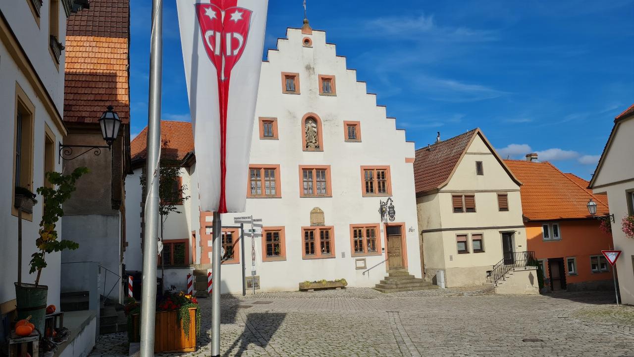 Der Abstecher ins quirlige Volkach lohnt immer. Dutzende Cafés und Restaurant laden in der verkehrsberuhigten Innenstadt ein, der Marktplatz mit seinem historischen Rathaus bietet ein malerisches Panorama. Geparkt wird vorzugsweise unten am Main, wo ein weiterer Stellplatz auf mobile Übernachtungsgäste wartet. Dort befinden sich auch die Anlegestellen der Ausflugschiffe, die zumindest während der Hochsaison zu unterhaltsamen Fahrten ablegen. Aber Saison ist in Volkach im Grunde immer, besonders gut besucht ist das Städtchen im August, wenn die regionalen Winzer ihr traditionelles Weinfest ausrichten.