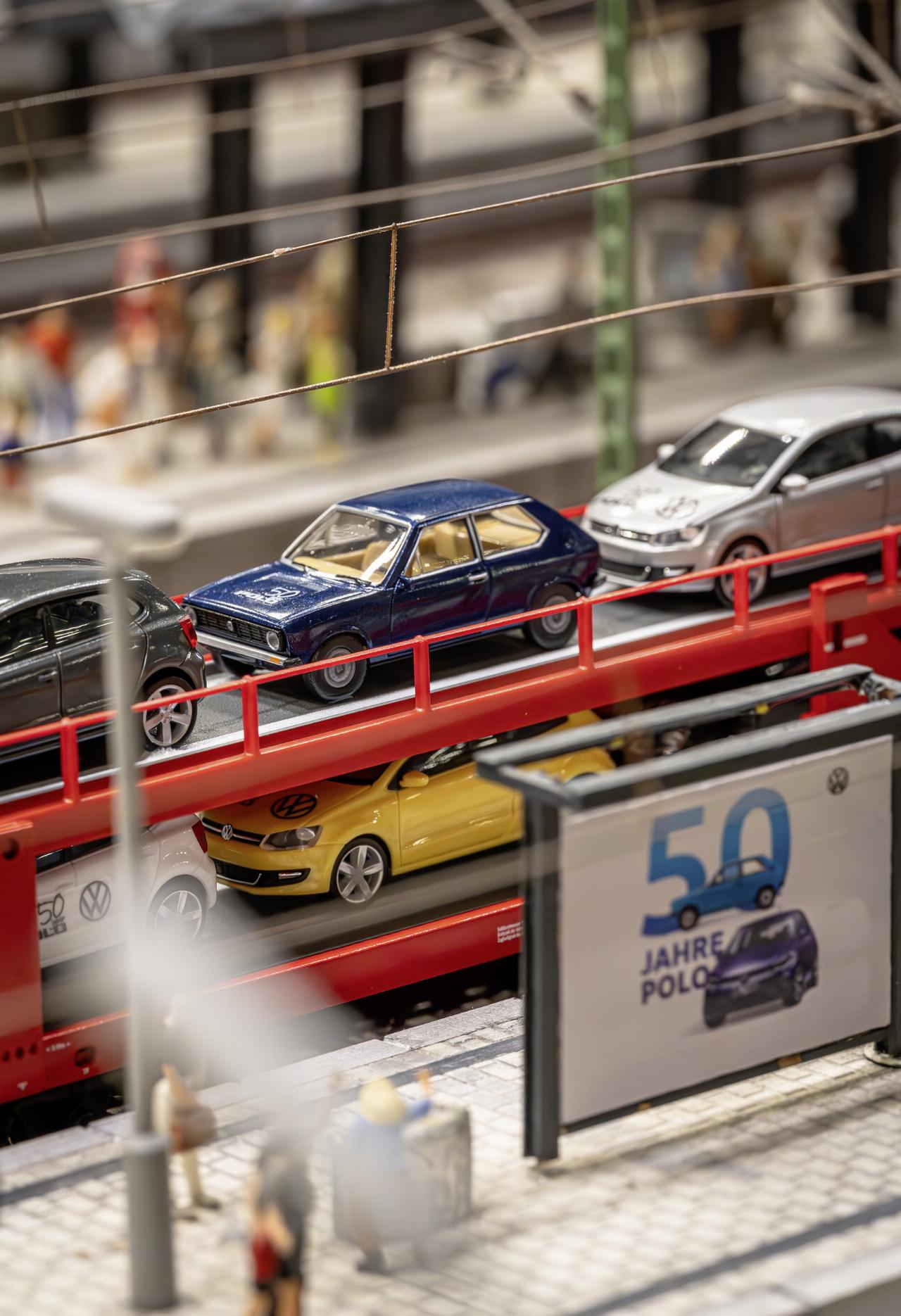 Auch eine der bekanntesten touristischen Attraktionen in Deutschland feiert das Jubiläum des Polo. Im Miniaturwunderland in der Hamburger Speicherstadt fährt ein ganz besonderer Autozug im H0-Maßstab 1:87. Er transportiert auf zwölf Waggons über 70 VW Polo unterschiedlicher Modelljahrgänge. Der Autozug mit Jubiläumsaufschrift ist im Hamburger Stadtgebiet der Miniaturwelt unterwegs und fährt an den Sehenswürdigkeiten wie Elbphilharmonie, Elbbrücken und Hafen vorbei. Und an den Modellbahnhöfe sind Plakatwände mit „50 Jahre Polo“ aufgestellt. (aum)
