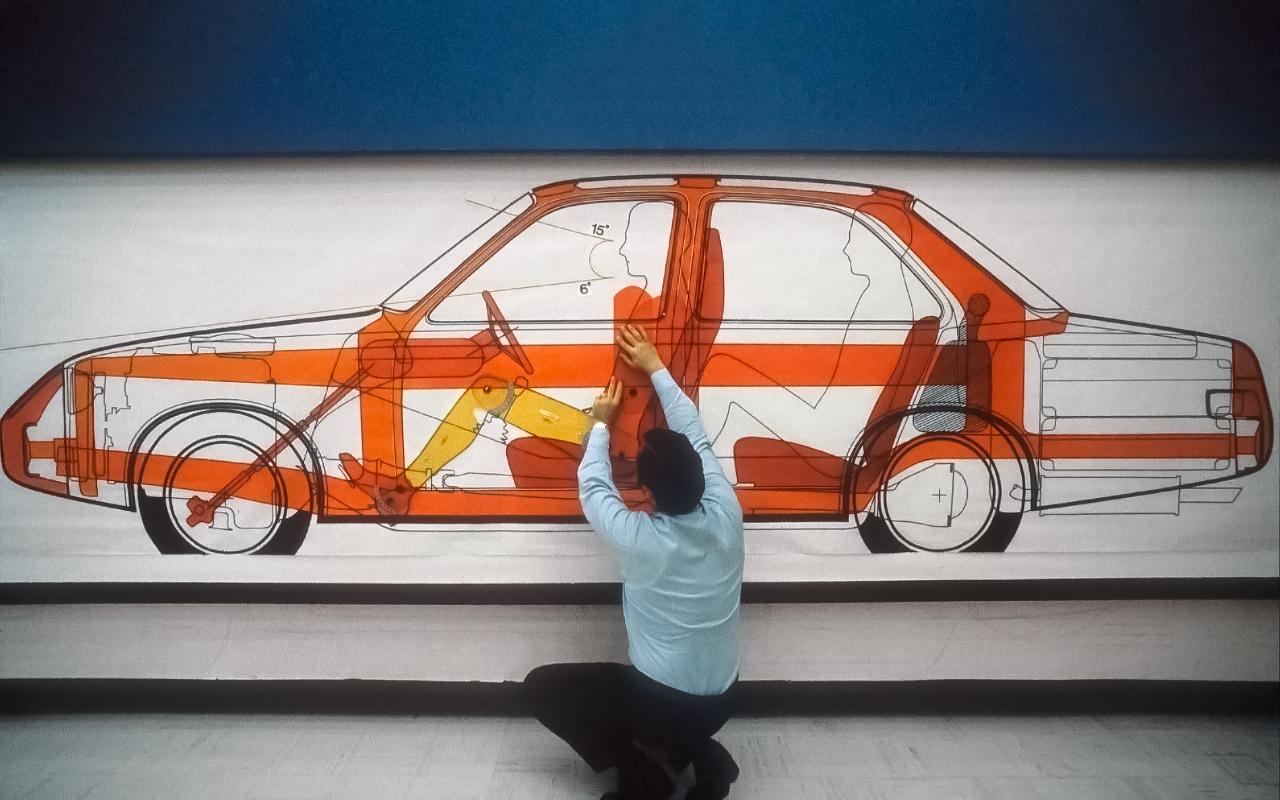 Die Vordersitze wurden so verbreitert, dass sie eine durchgehende Abgrenzung zum Fond bilden. Die seitlichen Abstützungen in der Mitte verhinderte bei einem Seitenaufprall das Zusammenstoßen von Fahrer und Beifahrer. Auch das eine Idee, die ihrer Zeit weit voraus war. Die minimalistisch ausgeführten Kopfstützen der Vordersitze gaben dem Fahrer eine möglichst gute Sicht nach hinten. Für Übersicht und Sicherheit sorgte auch das aus Gurten konstruierte Rückhaltesystem für die Köpfe der Fondpassagiere. Bei einem Heckaufprall legten sich die Bänder großflächig an die Köpfe der Passagiere und fingen sie weich auf. Darüber hinaus war OSV 40 auf allen vier Sitzplätzen mit Dreipunktgurten ausgestattet, vorne kamen bereits automatische Gurtstraffer zum Einsatz. (aum)