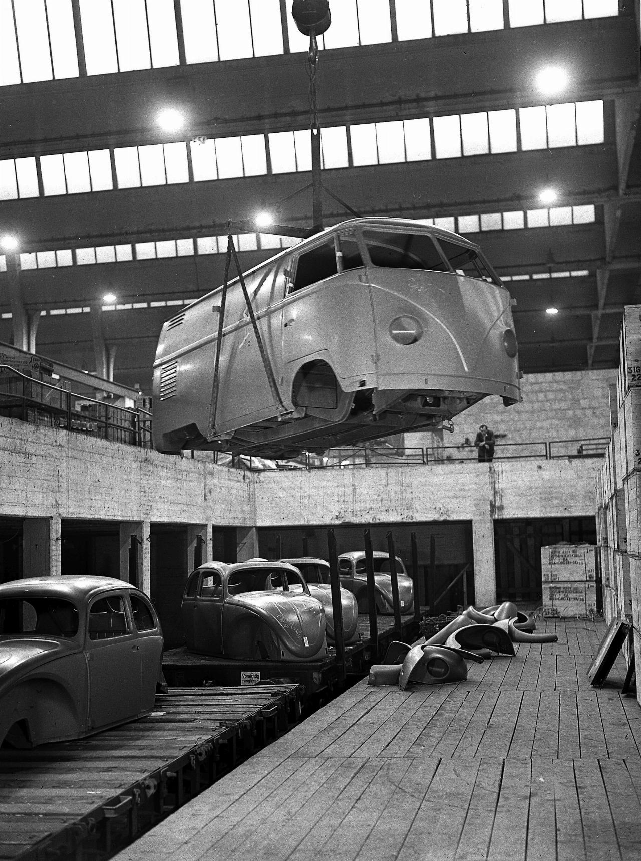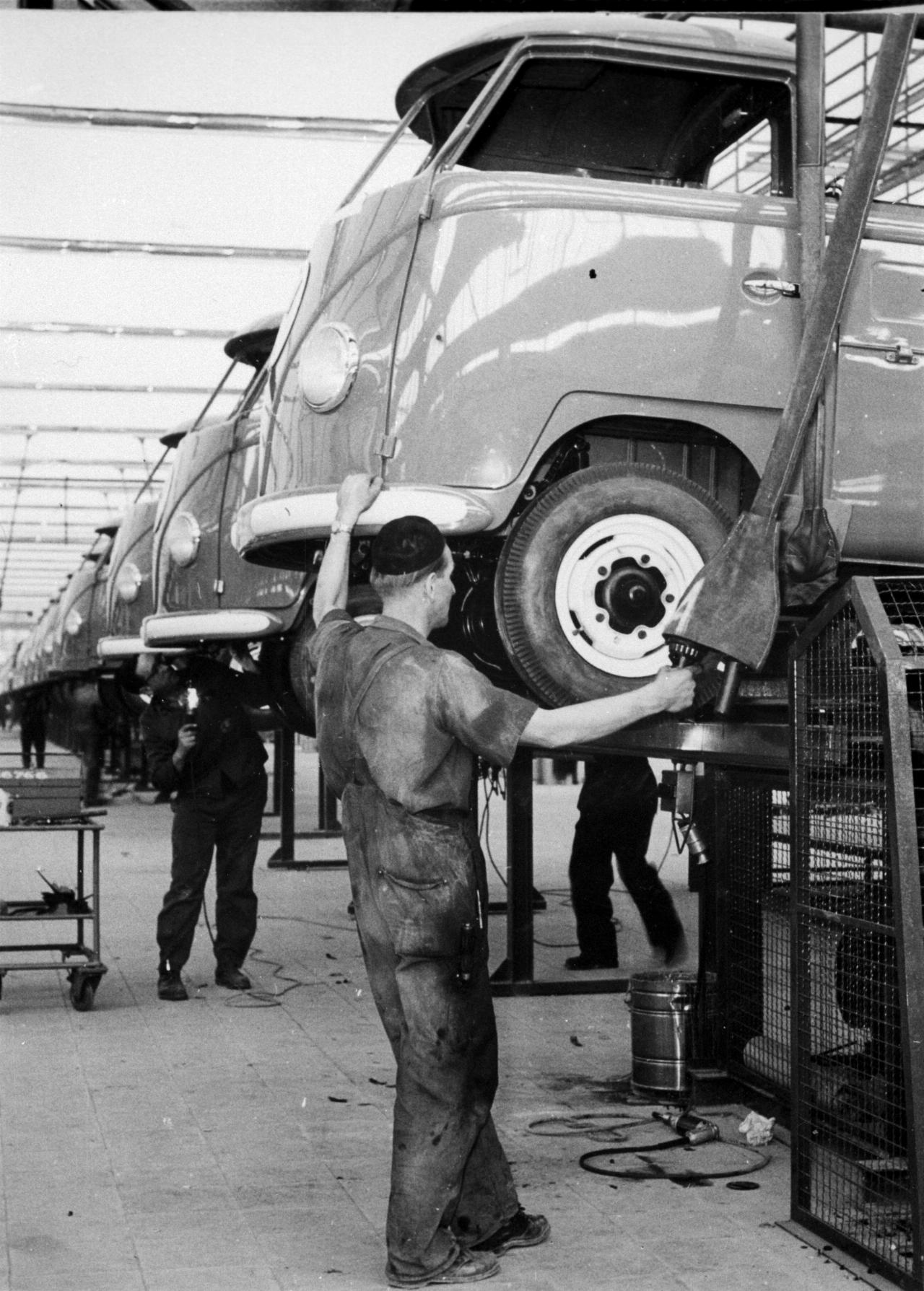 Die erste Version des 4,10 Meter langen Transporters ist ein Kastenwagen mit 4,5 Kubikmetern Laderaum. Wegen der zweigeteilten Windschutzscheibe („Split Window“) bekommt der T1 in Großbritannien den Spitznamen „Splittie“. Als Antrieb muss zunächst der 25 PS (18 kW) leistende Käfer-Motor herhalten, der den Typ 2 auf 80 km/h beschleunigt. Später steigt die Leistung auf 44 PS (32 kW) und die Höchstgeschwindigkeit auf 105 km/h. Als weitere Karosserievariante folgt bereits im April 1950 der verglaste Kombi. Danach kommen der Kleinbus und ein Pritschenwagen. Im Juni 1951 wird eine der legendärsten Bulli-Varianten präsentiert: Offiziell heißt sie „Kleinbus Sonderausführung“, besser bekannt ist er unter der Bezeichnung „Samba-Bus“. Der berühmte Neunsitzer zeichnet sich durch bis zu 23 Fenster, eine Zweifarblackierung und eine luxuriöse Ausstattung inklusive Panorama-Faltdach aus. 1956 verlegt Volkswagen die Fertigung in das damals neue Werk Hannover. Am 2. Oktober 1962 verlässt bereits der einmillionste T1 die Montagehallen.