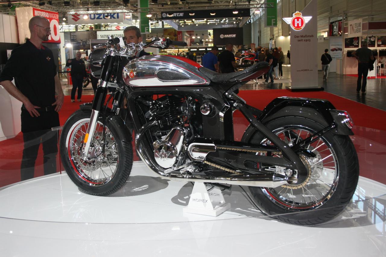 Das Design orientiert sich klar am Vorbild. Die 18-Zoll-Räder, der verchromte Tank mit Kniepads und der vorn aufgehängte Solosattel sind eindeutige Remniszenzen an die Ur-Regina. Das drei Zoll große, in das üppige Scheinwerfergehäuse eingelassene Touchscreen-LCD-Display Cockpit fällt in die Moderne. Ebenso der Preis für das neue Modell: Zwischen 30.000 und 35.000 Euro dürfte die Horex Regina Evo kosten. Lieferbar sein soll sie zur nächsten Saison. Noch ist die Homologation nicht abgeschlossen. (aum)