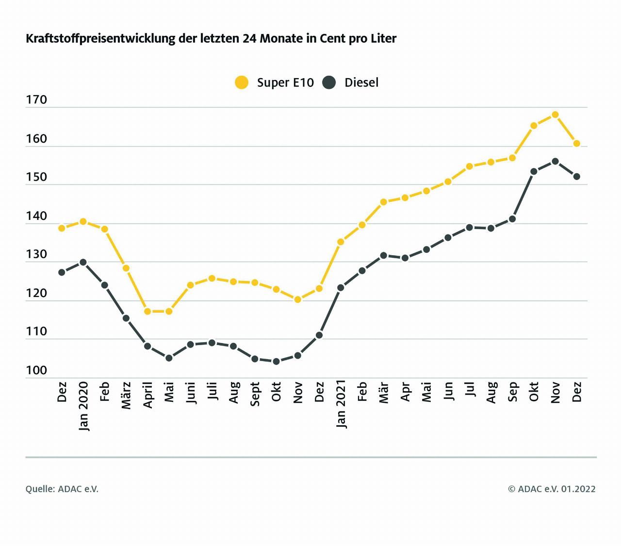 Wichtigster Grund für den starken Preisanstieg war laut ADAC die Erhöhung der Rohölnotierungen. Während ein Barrel der Sorte Brent zum Jahresbeginn rund 50 Dollar kostete, stieg der Preis im Laufe des Jahres zeitweise auf über 85 Euro an. Aber auch die CO2-Besteuerung hatte die Preise gleich zu Jahresbeginn verteuert.