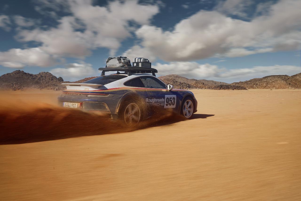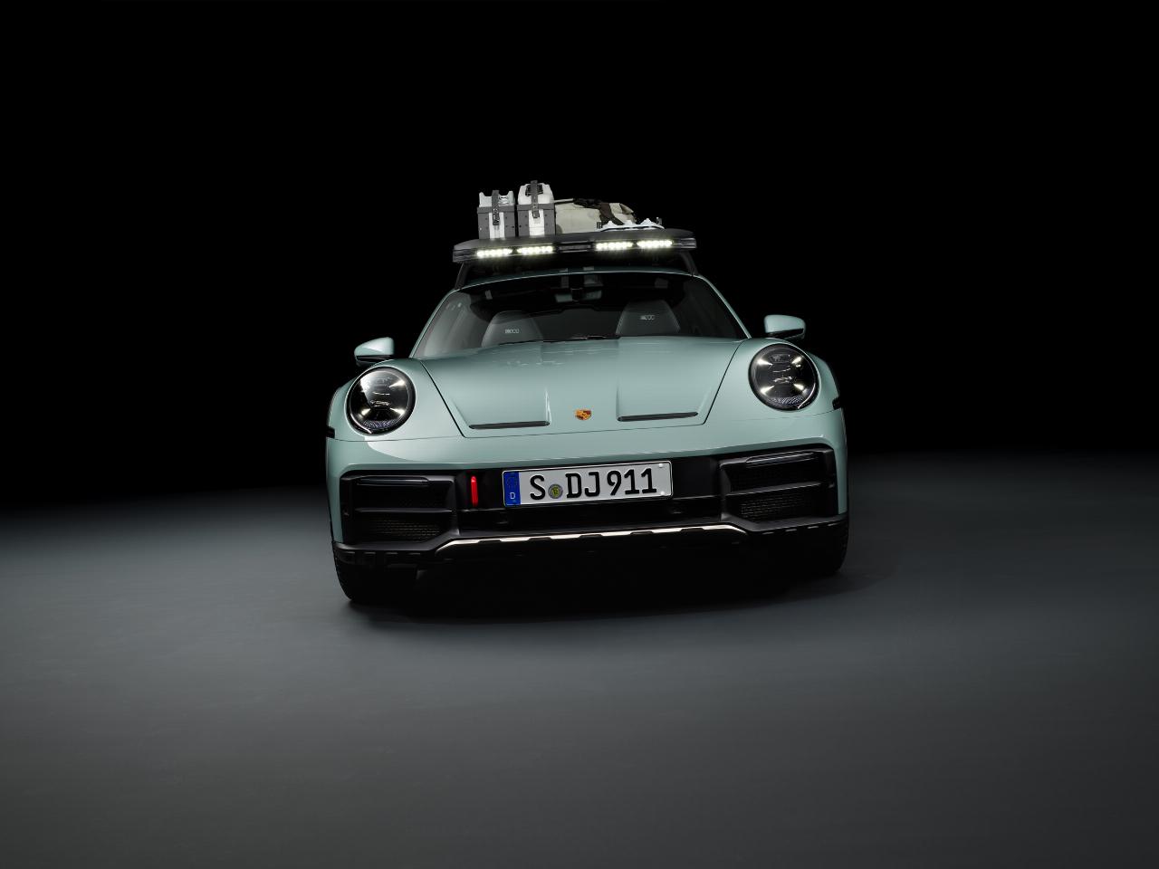 911 Carrera mit Sportfahrwerk. Darüber hinaus kann das serienmäßige Liftsystem den Vorder- und Hinterwagen um weitere 30 Millimeter anheben. Damit erreichen Bodenfreiheit und Rampenwinkel das Niveau klassischer SUV. Das Liftsystem dient nicht nur zum langsamen Überqueren von Hindernissen, sondern ist integraler Bestandteil des neu abgestimmten Fahrwerks. Die Einstellung „Hochniveau“ des Liftsystems funktioniert offroad bis zu einer Geschwindigkeit von 170 km/h, bei mehr Tempo senkt sich das Fahrwerk automatisch wieder ab.