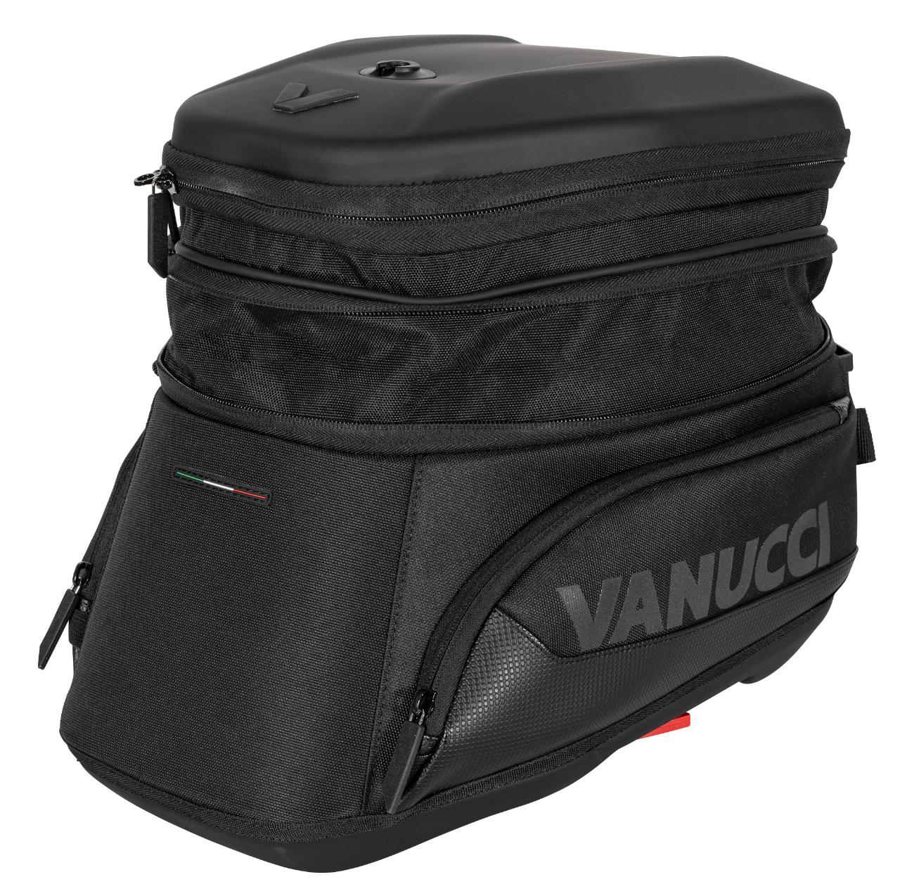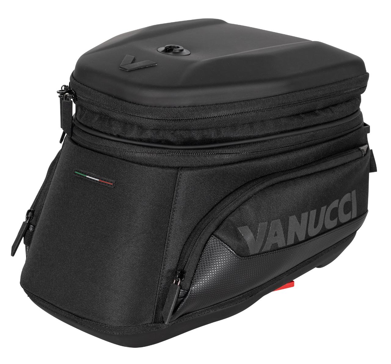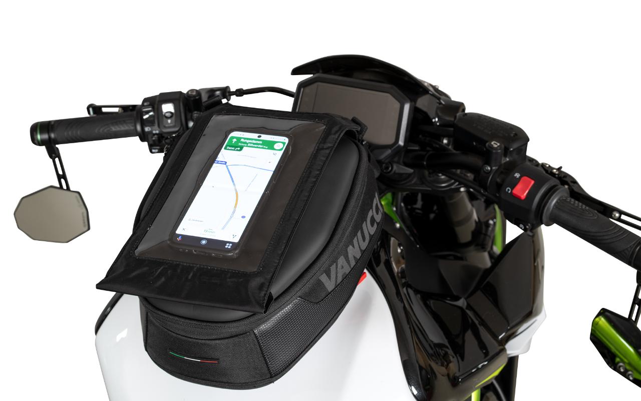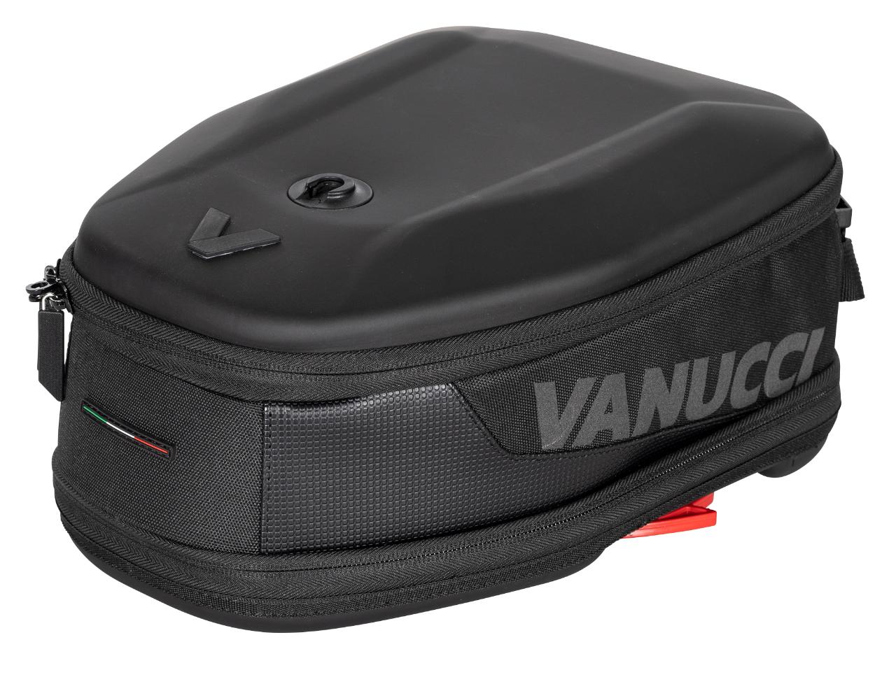 Die Preise bewegen sich zwischen 119,99 Euro und 199,99 Euro. Zusätzlich gibt es für alle Modelle zwei Aufsätze für Landkarte oder Tablet sowie fürs Smartphone. Vanucci weist die Tankrucksäcke nicht explizit als wasserdicht aus, aber wasserabweisendes Außenmaterial und ein zusätzlicher Innensack mit Rollverschluss sollen für ausreichenden Nässeschutz sorgen. Die Givi-Adapter für den Tank sind je nach Motorradmodell ab 12,50 Euro erhältlich. (aum)