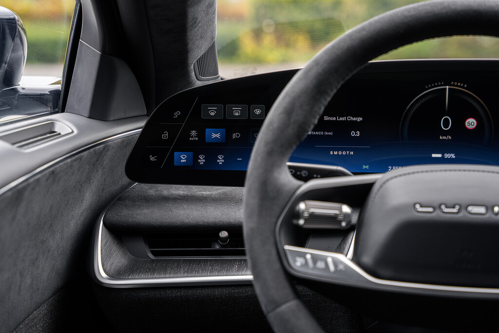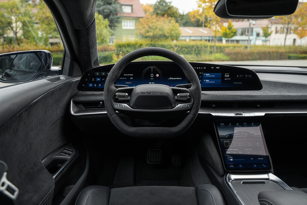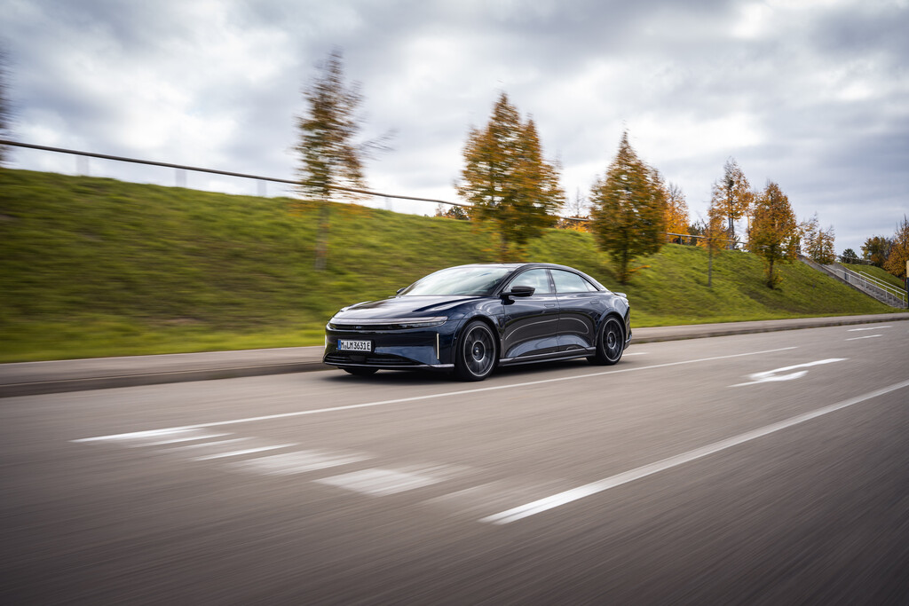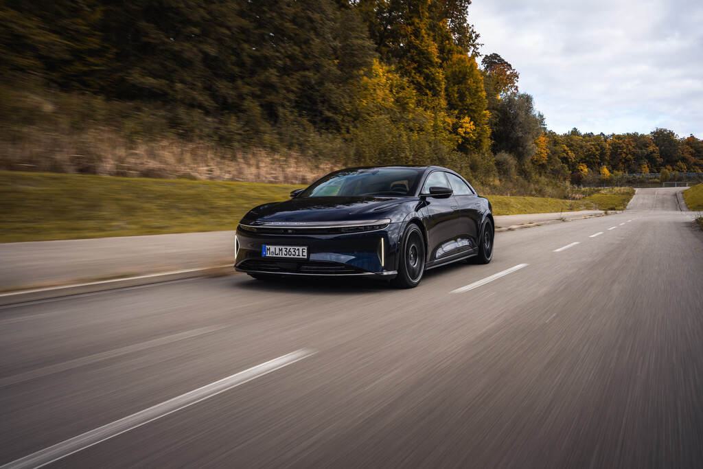 Mit einer Leistung von 920 kW/1250 PS ist der Lucid Air Sapphire eine Limousine der Superlative. Drei Elektromotoren, die ihre Kraft auf beide Achsen übertragen, sorgen nicht nur für eine Beschleunigung von 0 auf 100 km/h in glatten 2 Sekunden, sondern auch für eine Höchstgeschwindigkeit von 330 km/h. Dieser Wert ist übrigens abgeregelt; offen würde der Sapphire, so verraten Insider, eine Vmax von rund 380 km/h erreichen.