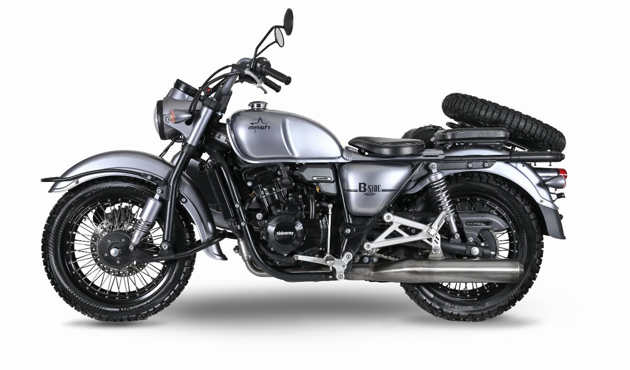 Mash wird ein Zweizylinder-Gespann mit 494 Kubikzentimetern Hubraum und 54 PS (40 kW) auf den Markt bringen. Das B-Side 500 genannte Modell verfügt über fünf Vorwärts- und einen Rückwärtsgang sowie eine Vorderradschwinge und einen 18-Liter-Tank. Das Gewicht wird mit 345 Kilogramm angegeben. Die Mash B-Side soll bereits ab April verfügbar sein und knapp 12.523 Euro kosten. Das bekannte 400er-Modell Black Side bleibt weiterhin im Programm. (aum)