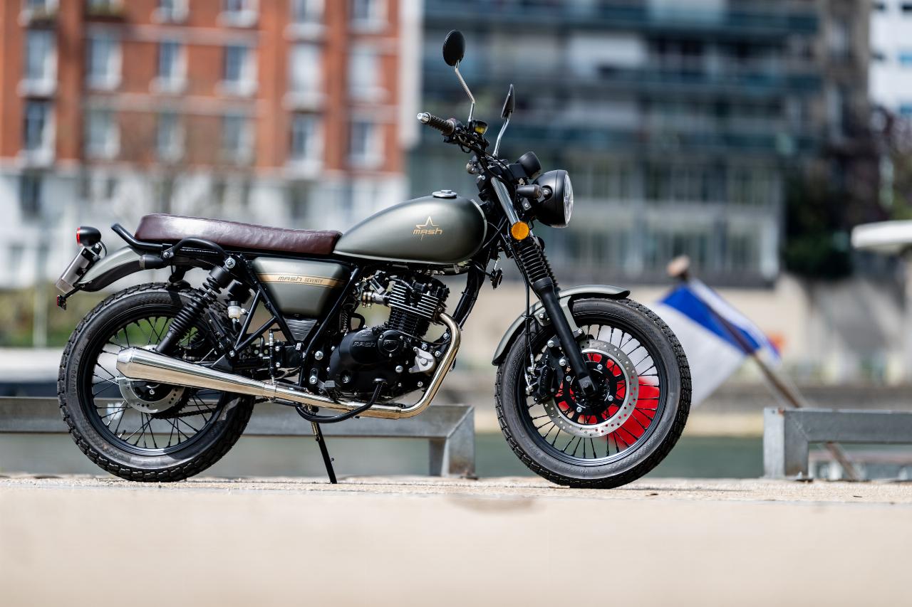 Mash hat die Seventy im Detail verfeinert. Das Leichtkraftrad erhält einen LED-Scheinwerfer, eine komfortablere Sitzbank mit gesticktem Marken-Logo und ein neues analoges Rundinstrument. Mit Ausnahme der schwarzen Ausführung wird künftig ein Edelstahlauspuff montiert. Mash gewährt unverändert drei Jahre Garantie ohne Kilometerbegrenzung und bietet die luftgekühlte Seventy mit ihren elf PS (acht kW) für 2761 Euro an (Österreich: 2850 Euro). (aum)