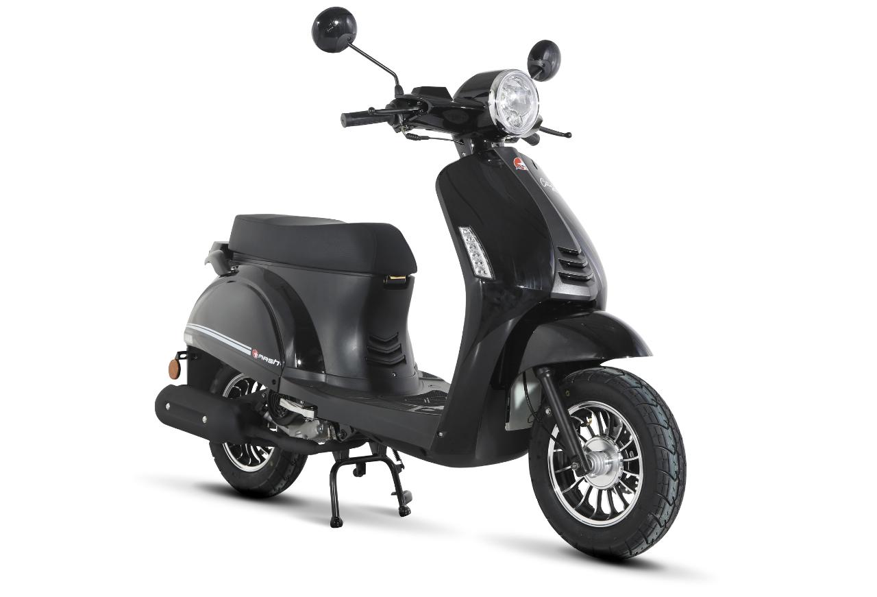 Mash, letzter verbliebener Anbieter von Kleinkrafträdern mit 45 km/h Höchstgeschwindigkeit, erweitert sein Sortiment nun um 50-Kubik-Roller. Angeboten werden vier Euro-5-Viertakter: Der klassisch gestylte City 2.0, zwei Varianten eines Modells namens Legend R im leichten Crossstil und der sportiv gezeichnete Bibop 2.0. Punkten sollen die von Moto-Morini-Besitzer Zhongneng in China gebauten Scooter nicht zuletzt durch ihren Preis: Mash ruft zwischen 1937 Euro und 2137 Euro auf (Österrreich: 2043 Euro bis 2245 Euro). Dazu gibt es drei Jahre Garantie. (aum)