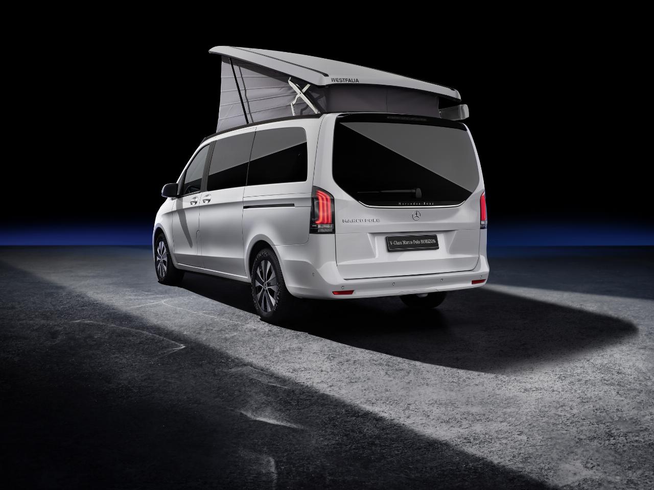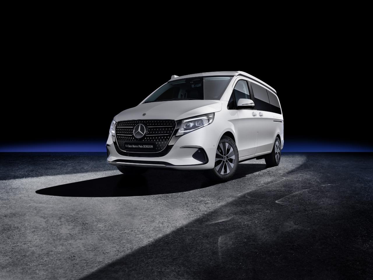 Mercedes-Benz rundet das Portfolio der in diesem Jahr überarbeiteten V-Klasse mit dem Allrounder Marco Polo Horizon ab. Das alltagstaugliche Freizeitmobil bietet ein Aufstelldach mit zwei Schlafplätzen sowie eine zur Liegefläche umklappbare Dreier-Sitzbank mit zwei darunter liegenden Schubladen. Serienmäßig gibt es zwei Schiebetüren und zwei drehbare Vordersitze. Als Extras können unter anderem Klapptisch, ein Außenstromanschluss und eine Standheizung bestellt werden. Die Preisliste für den Mercedes-Benz Marco Polo Horizon beginnt bei 58.940 Euro. (aum)