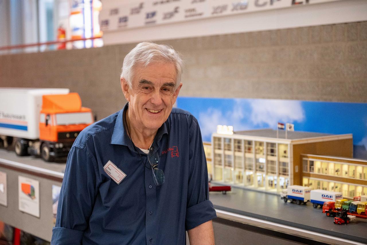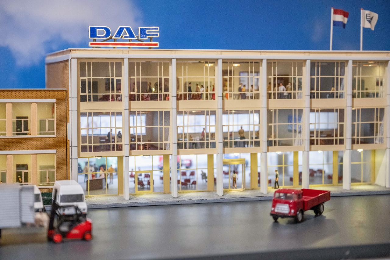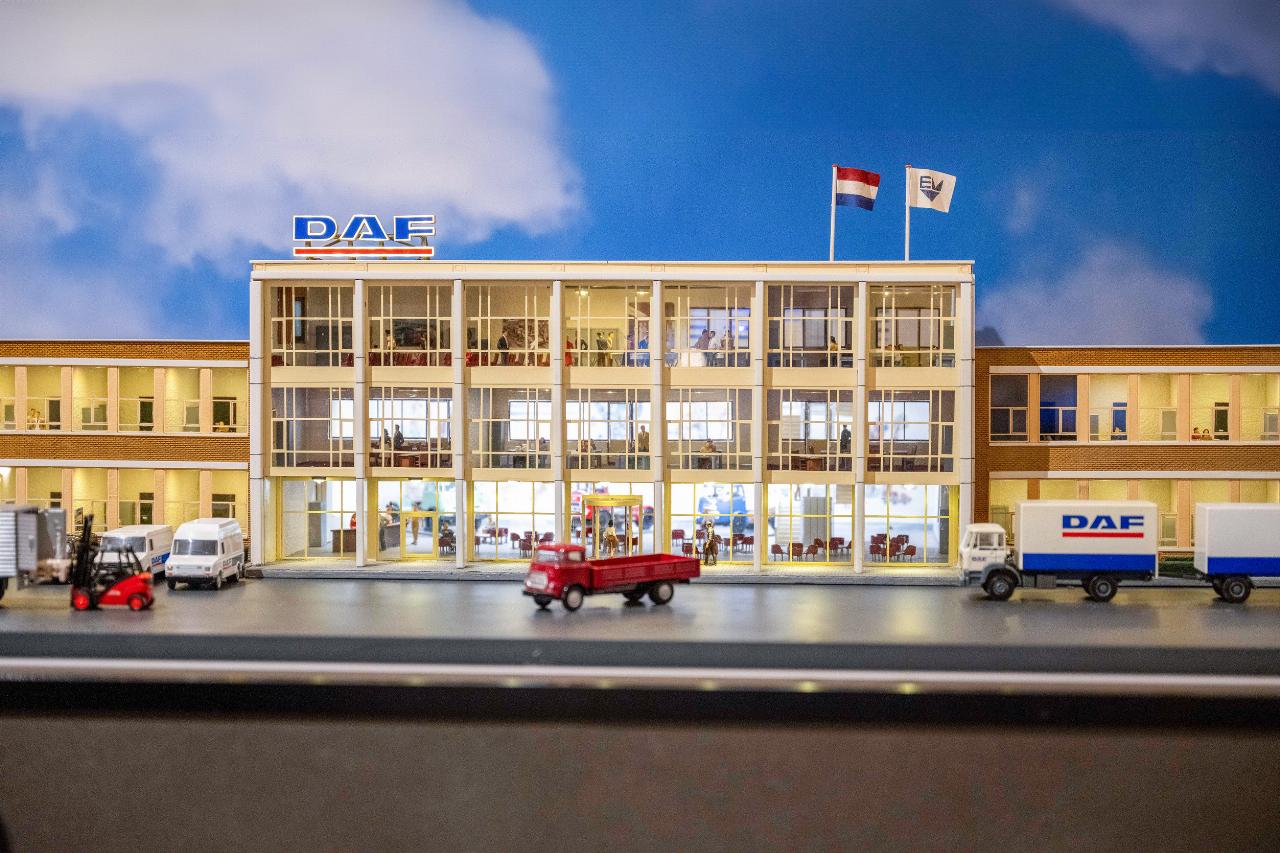 Hinter dem Miniaturbauwerk steckt Rien Gerrits, der seit 2018 als einer der 200 Freiwilligen in dem Museum arbeitet. Begonnen hat er mit der Arbeit bereits vor zwölf Jahren. Der 73-Jährige ist Mitglied des Eindhovener Modellbauvereins und war zunächst gefragt worden, ob ein Modell der Fassade des DAF-Hauptgebäudes bauen könne. Das war ihm am Ende zu wenig und so entstanden anschließend auch die etwas zurückgesetzten Seitenflügel. Mit jedem Baufortschritt wuchs der Ehrgeiz und die Lust an originalgetreuen Details. „Das Projekt hat ein Eigenleben entwickelt, und es ist noch lange nicht fertig. Im Moment arbeite ich an den Geländern und an der Pförtnerloge“, berichtet Rien Gerrits. (aum)