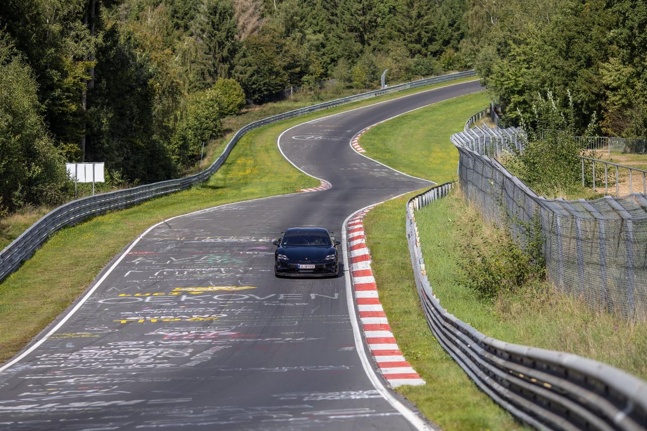 Bei der Anfahrt zum Schwedenkreuz war das Vorserienauto zum Beispiel gut 25 km/h schneller unterwegs. Am Ende machte das Vorserienfahrzeug gegenüber dem aktuellen Taycan Turbo S auf dem 20,8 Kilometer langen Kurs in der Eifel über 1,3 Kilometer gut.