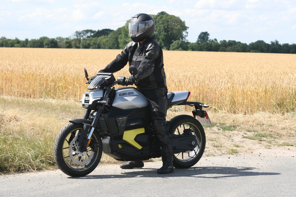 Vehement beschleunigt die Can-Am Pulse unter optimalen Bedingungen in 3,8 Sekunden von 0 auf 100 km/h. Bei 127 km/h setzt die Leistungselektronik weiterem Vortrieb zugunsten des Energieverbrauchs ein Ende. Ohnehin ist der Akku mit einer Kapazität von 8,9 kWh recht knapp bemessen. Das reicht für eine Normreichweite von 130 Kilometern (bei der Origin sind es noch einmal 15 Kilometer weniger). Immerhin erweist sich diese Angabe in der Praxis nicht als Fantasiewert. Und Can-Am sieht die Pulse ohnehin am liebsten in der Hand „smarter Pendler und urbaner Entdecker“ (O-Ton). Immerhin ist die Batterie in gut zwei Stunden wieder voll.