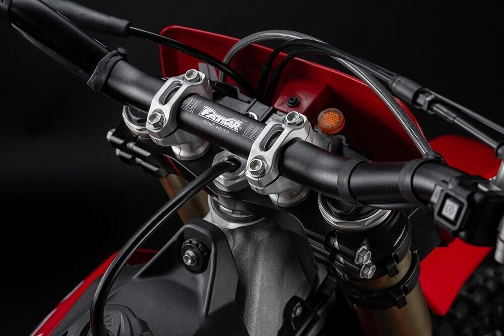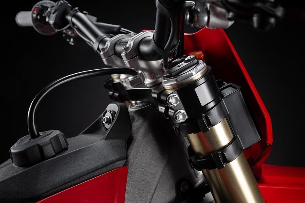 Darüber hinaus können in Echtzeit Motordrehzahl, Gasstellung, Luft- und Kühlmitteltemperatur, Luftdruck und Fehlermeldungen angezeigt werden. Auch Betriebsstunden, Ölwechsel- und Serviceintervalle lassen sich abrufen. Ein spezieller Bereich der App empfiehlt zudem die optimalen Fahrwerkseinstellungen – je nach Strecke, Fahrergewicht und Erfahrungslevel. Für das Setup bietet Ducati zudem Federn für die Gabel und das Federbein mit abweichenden Federraten zur Anpassung an das Fahrergewicht an. Außerdem gibt es verschiedene Übersetzungen für die Endantriebe. Ebenfalls erhältlich sind ein aus der Motocross-WM abgeleiteter Rennsitz mit speziellem Bezugsmaterial, ein Fatbar-Lenker und Griffe mit Aramid-Fasern, beide zu kombinieren mit dem neuen Gasgriffrohr.