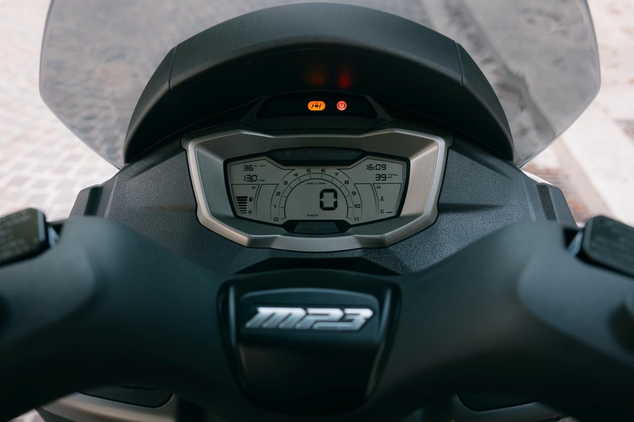 Das Design des MP3 310 orientiert sich mit seiner automobilähnlichen Frontanmutung an den vor zwei Jahren präsentierten größeren Geschwistern 400 und 530. Zur Ausstattung des Dreiradrollers gehören unter anderem Antischlupfregelung, Keyless-System und ein USB-Anschluss. Zudem wurden die Bedienelemente gegenüber dem 300er neu angeordnet. Neben der Basisversion gibt es auch die neue Version als Modellvariante Sport. (aum)