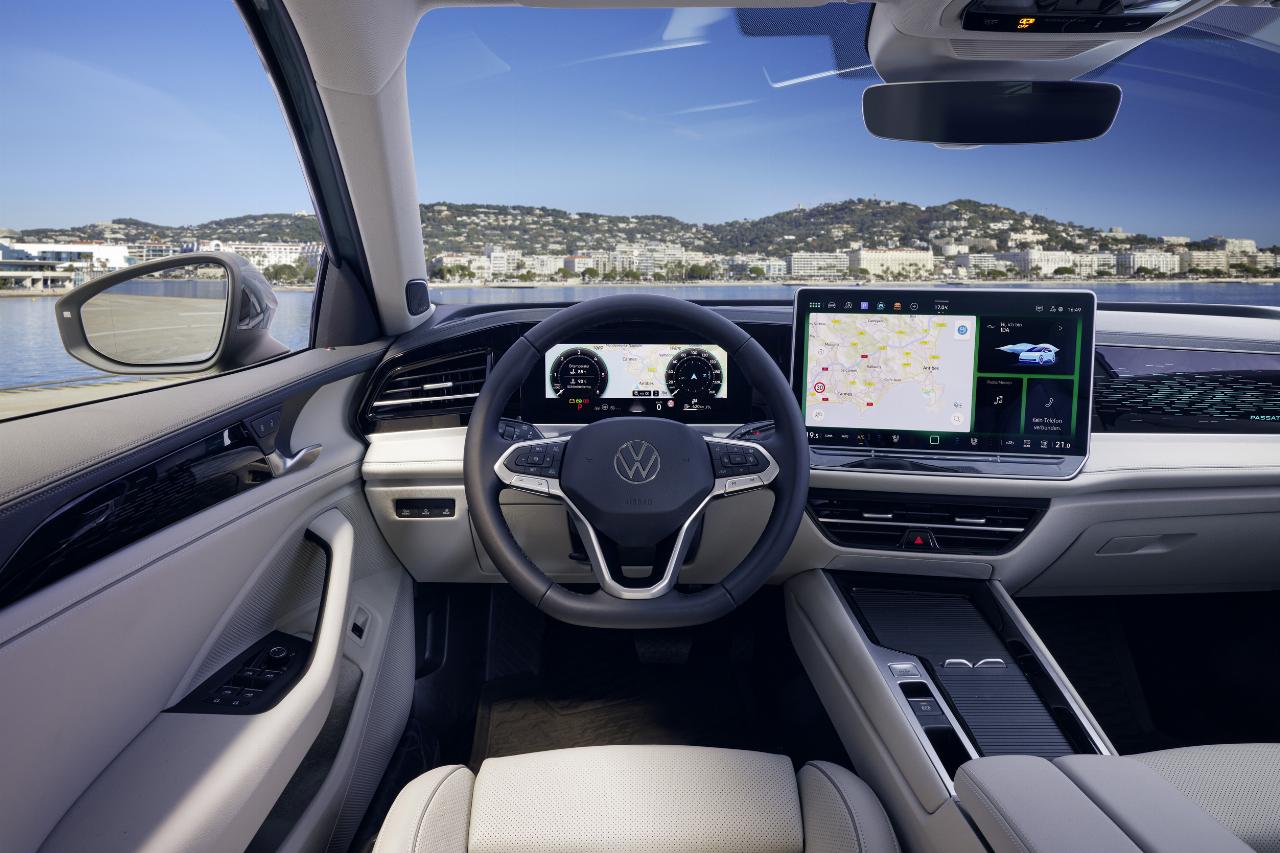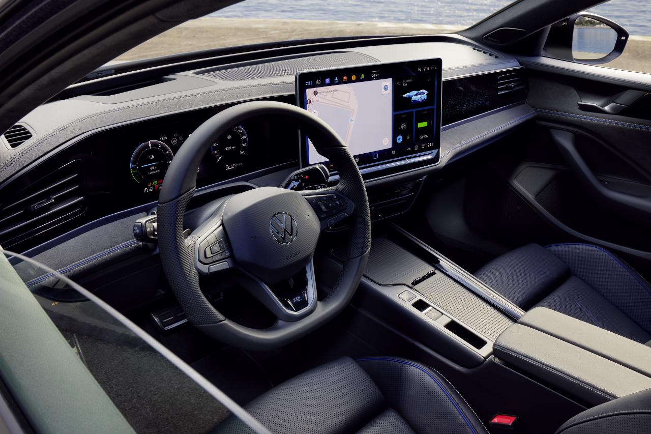 Das Interieur wirkt geräumig und luftig, die optional mit Massagefunktion ausgerüsteten Sitze passen wie angegossen, in der Mitte sitzt ein großer, berührungsempfindlicher Bildschirm, der sich intuitiv bedienen lässt und mit einer hervorragenden Kartendarstellung glänzt. Die abgedeckten Cupholder sorgen für reduzierte, saubere Optik. Und das neue VW-Einheitslenkrad verfügt über echte Tasten, die sich viel besser als bisher bedienen lassen. Besser geworden ist auch der Sprachassistent, der sich übrigens der intelligenten, vieldiskutierten Software ChatGPT bedient.