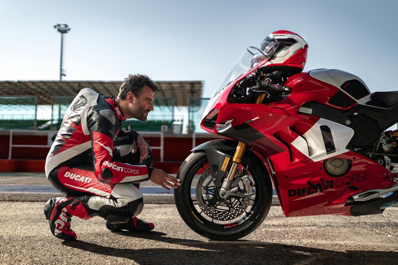 Ebenfalls für den Einsatz auf der Rennstrecke hat Ducati sein Helm-Spitzenmodell erneuert, den Ducati Corse V7 von Arai. Das exklusiven Design ist von der Grafik des Desmosedici-Stradale-Motors inspiriert. Die passenden Stiefel Corse V6 Air gehen auch auf die Erfahrungen der Werksfahrer zurück.