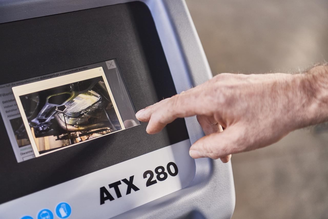 Während des Getriebeölservices werden auf dem übersichtlichen Touchscreen fotorealistisch und nachvollziehbar alle Arbeitsschritte dargestellt. Der Inhalt des Bildschirms kann dabei auch auf das Smartphone gespiegelt werden. Das ist besonders hilfreich, wenn während des Wartungsprozesses beispielsweise verschiedene Schaltstufen eingelegt werden müssen. Das kann so bequem aus dem Fahrzeuginneren erledigt werden. (aum)