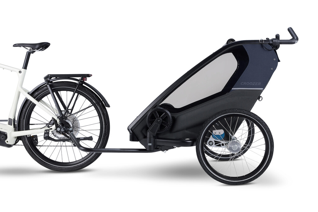 Auch im Segment der Kinder-Anhänger gibt es eine nützliche Innovation: Hersteller Croozer hat mit dem Modell Lykke (1200 Euro) einen Falt-Anhänger mit Sitzplätzen für zwei Kinder im Angebot, der sich mit zwei Handgriffen auf eine Breite von lediglich 40 Zentimetern zusammenklappen und damit auch in engen Garagen oder Hausfluren abstellen lässt.