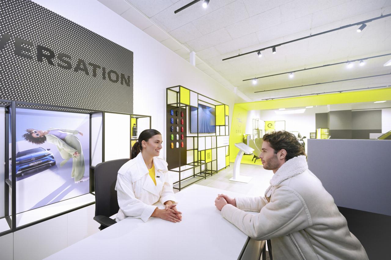 Opel stellt seine Autohäuser nach und nach auf die neue Corporate Identity um. Nach außen hin dominieren die Farben Gelb und Dunkelgrau mit dem neu gestalteten Markenlogo. Zentraler Punkt im Showroom ist eine in leuchtendem Opel-Gelb gestaltete Fläche. Der so genannte „Discovery Hub“ dient mit seinen besonders designten Stühlen und Sofas als Lounge-Bereich. Auch Merchandising-Artikel und praktisches Zubhör werden dort präsentiert. Vor den ansonsten in Weiß und Grau gehaltenen Flächen werden die ausgestellten Fahrzeuge unter fokussierenden Beleuchtungsbändern hervorgehoben. Ein spezieller Wandbereich widmet sich den Aspekten der Elektromobilität. Auch die Bereiche, in denen die persönlichen Beratungs- und Verkaufsgespräche geführt werden, werden neu gestaltet. (aum)