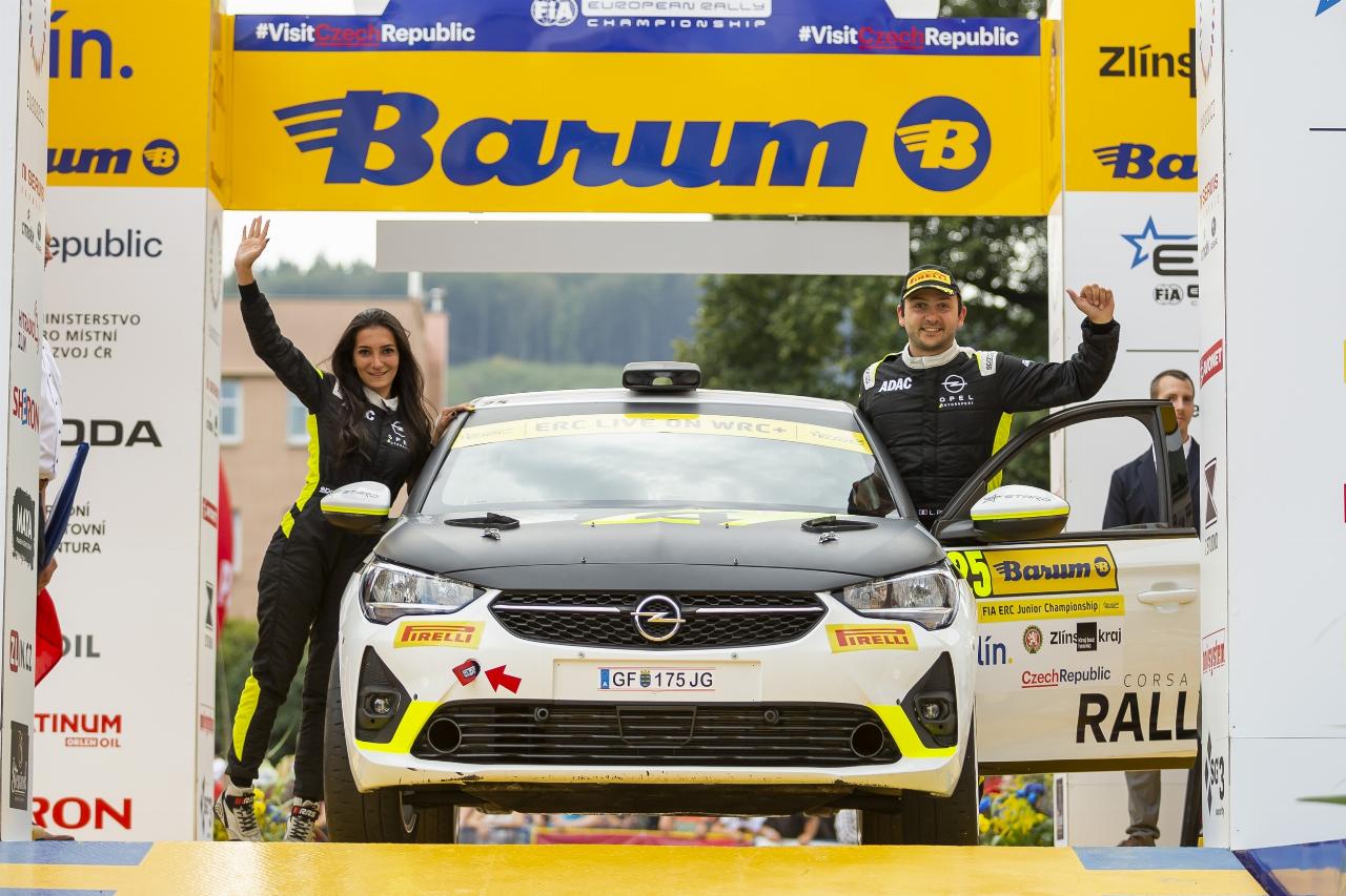 Mit seinem vierten Saisonsieg hat der Franzose Laurent Pellier dem ADAC-Opel-Rally-Junior-Team bei der Barum Czech Rally Zlin den insgesamt fünften Titelgewinn in der Rallye-Junior-Europameisterschaft (JERC) beschert. Der 27-Jährige und seine Beifahrerin Marine Pelamourgues (24) waren im 212 PS starken Opel Corsa Rally4 in elf der 13 Wertungsprüfungen die Schnellsten. Am Ende betrug ihr Vorsprung auf den Italiener Andrea Mabellini im Renault Clio Rally4 über anderthalb Minuten. Der vor der tschechischen JERC-Runde einzige noch ernsthafte Titelrivale, der Spanier Oscar Palomo im Peugeot, lag im Ziel in Zlin sogar 2:23,3 Minuten zurück. Zuvor hatte Pellier bereits bei den Junior-EM-Läufen auf Gran Canaria sowie in Polen und Italien den Sieg eingefahren. (aum)
