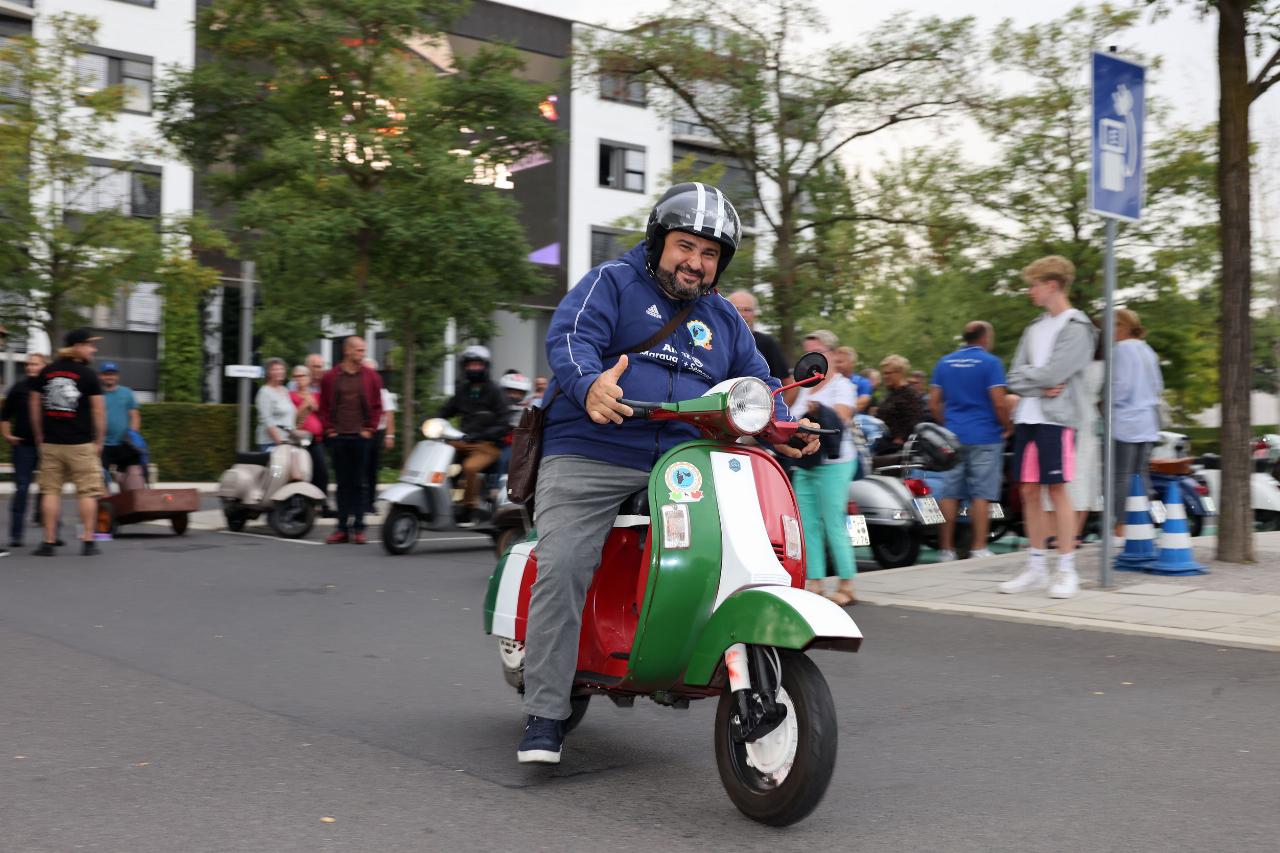 Das Besondere an der Vespa sei die Einzigartigkeit und die Individualität, die jeder Maschine durch den Charakter dihres Besitzers verliehen wird, und trotzdem bedeute die italienische Ikone Gemeinschaft und Verbundenheit der Vespisti, sagt Francesco Falsone. Er hatte als Vorsitzender des 170 Mitglieder starken und damit größten Vespa-Vereins Deutschlands das Treffen organisiert. (aum/ls)