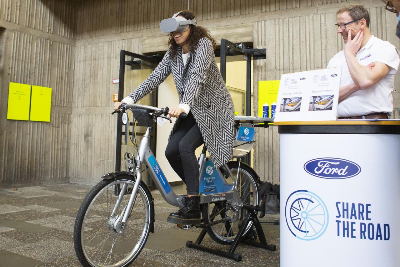 Einen gänzlich anderen Bereich bildet Ford mit seiner Kampagne „Share the Road“ ab, eine Aktion, mit der der Kölner Automobilhersteller das Verständnis zwischen Auto- und Radfahrern im Straßenverkehr verbessern möchte. Im Rahmen des City Hub können Messebesucher am innerstädtischen Hohenzollernring vom 18. bis 21. Mai jeweils zwischen 14 und 20 Uhr an zwei Modulen typische Gefahrensituationen zwischen Auto- und Radfahrern in praktischen Übungen erleben. Begleitet von einem professionellen Trainerteam bietet Ford an vier Fahrrädern die Möglichkeit, sich mittels einer VR-Brille in die Rolle des jeweils anderen Verkehrsteilnehmers zu versetzen.