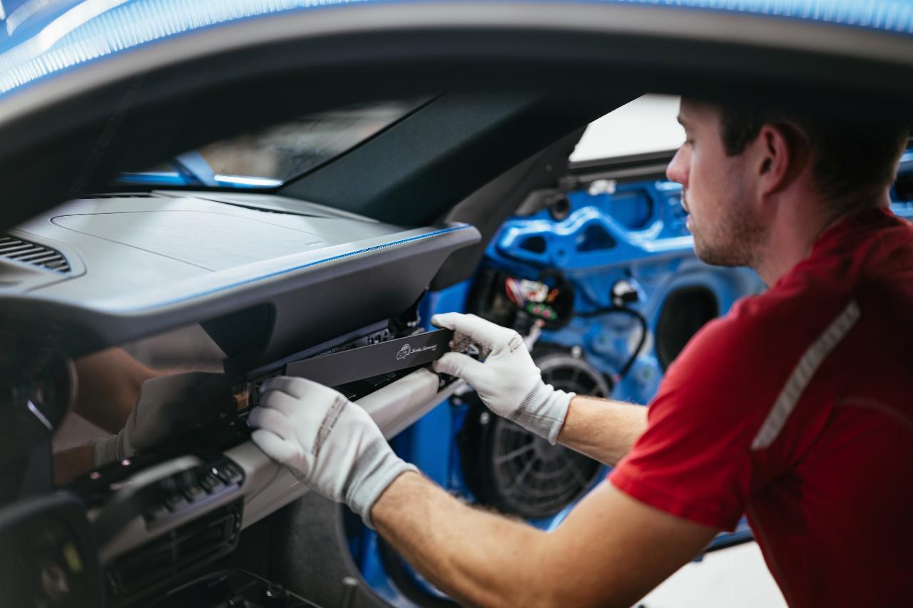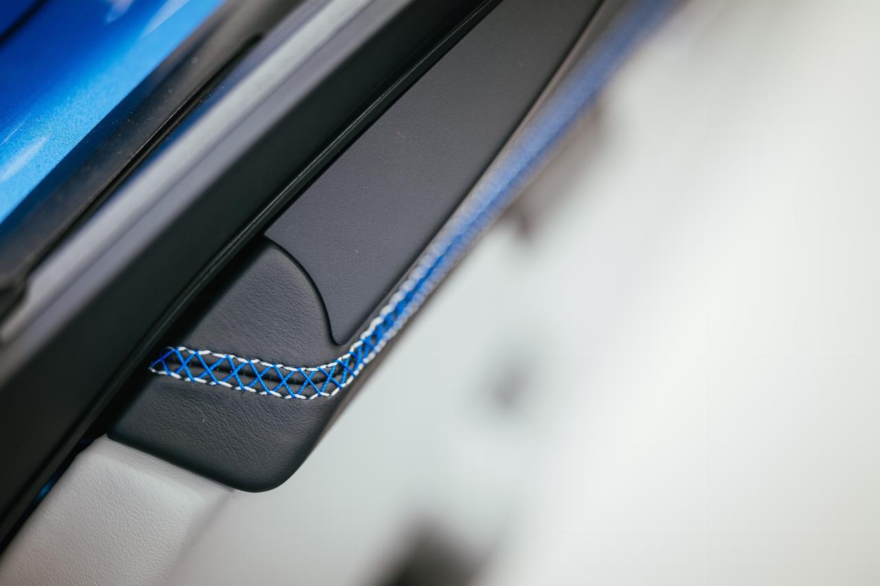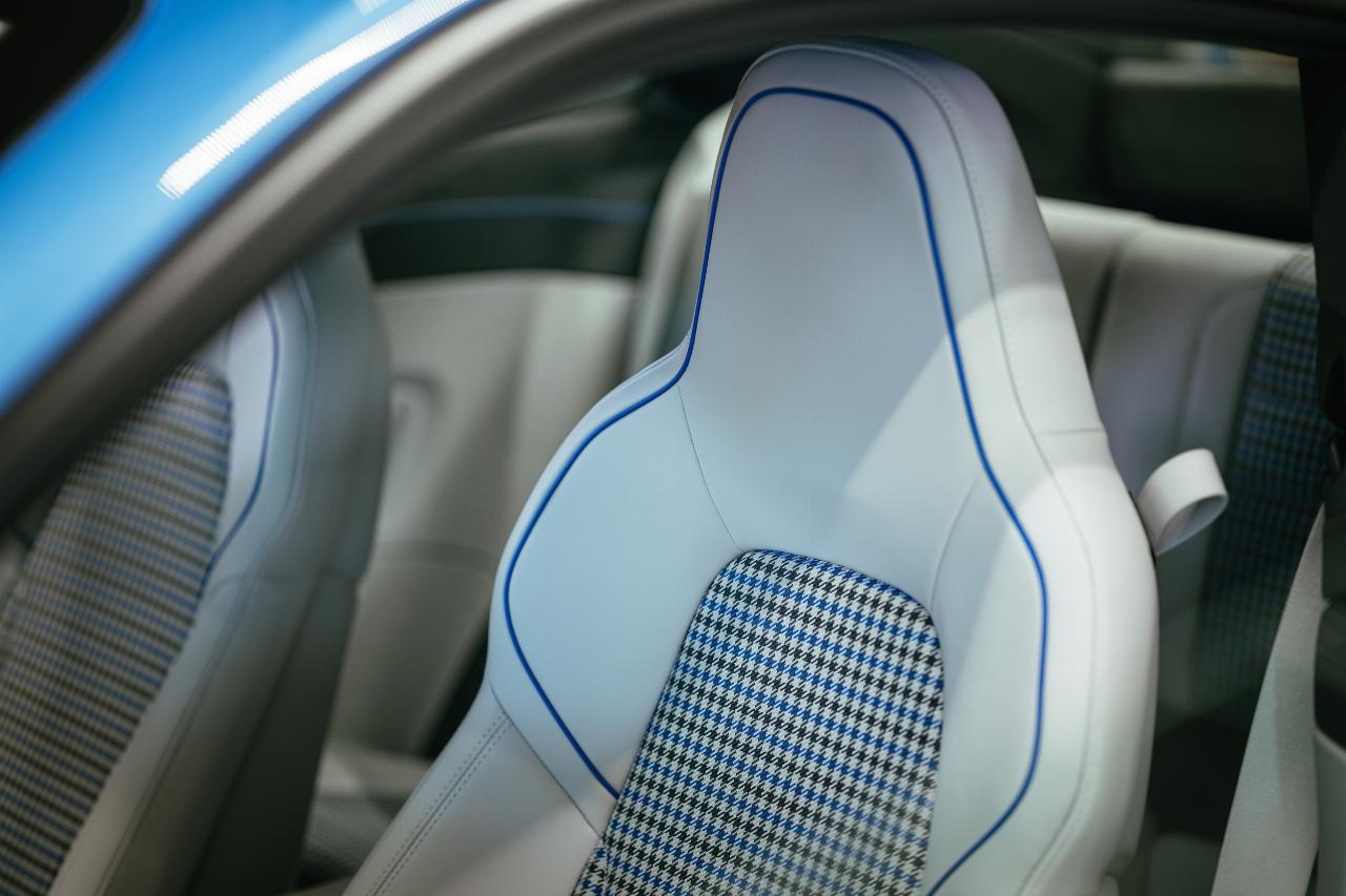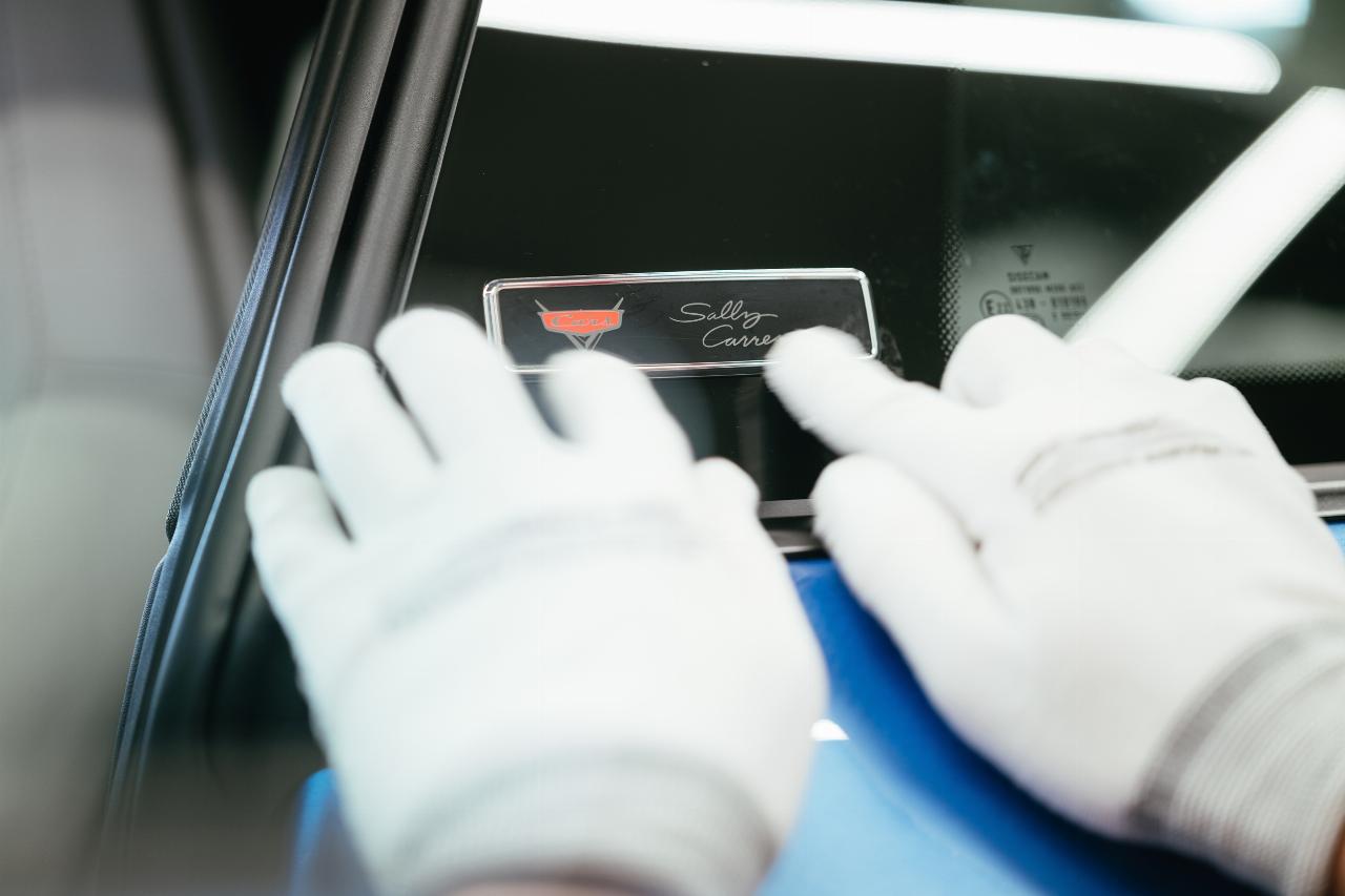 Interieurdesignerin Daniela Milosević leitete das Team, das gemeinsam mit Pixar den neuen Blauton sowie das Fahrzeuginterieur gestaltete. „Wir konnten uns komplett frei entfalten, was großartig war. Im Film war Sally Carrera eine Anwältin aus Kalifornien, die Stil und Eleganz schätzt. Gleichzeitig war sie bodenständig und lebensfroh”, sagt Milosević. So setzt sich die äußere Farbgebung im Innenraum in subtilen Details fort. „Dabei war es uns wichtig, die Alltagstauglichkeit und Praktikabilität nicht zu vergessen. 911 Sally Special soll gerne und häufig gefahren werden. Wir haben einen besonderen Pepita-Stoffbezug in drei Farben entwickelt, der mit kreidefarbenem Leder und Nähten in Speedblau kombiniert wurde.“