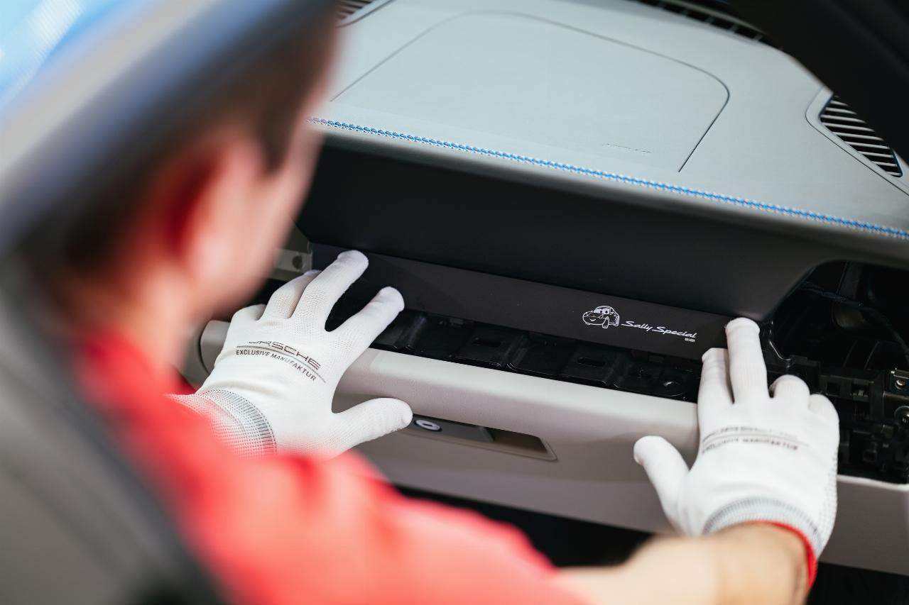 „Das Auto basiert auf der schnellsten und agilsten Variante der 911 Carrera Modellreihe, dem 480 PS starken 911 Carrera GTS. Es ist mit einem Schaltgetriebe ausgestattet und greift damit Sally Carreras Leidenschaft zum Fahren auf “, erklärt Boris Apenbrink, Leiter Porsche Exclusive Manufaktur Fahrzeuge. „Der 911 Sally Special war eines der intensivsten, emotionalsten und detailverliebtesten Sonderwunsch-Projekte, an denen unser Team bisher gearbeitet hat. Ein Beispiel: Das Auto ist in Sallyblaumetallic lackiert, einem speziell für dieses Projekt entwickelten Lack, der von Hand aufgetragen wurde.” Die Turbo-Look-Felgen wurden von den Designern in Weissach neu interpretiert und speziell für den 911 Sally Special gefertigt.
