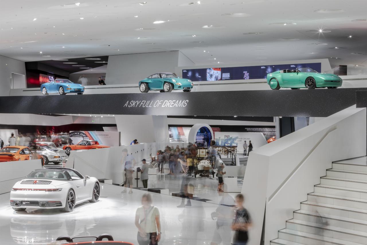 Das Ausstellungskonzept setzt auf Themeninseln, fasst Dekaden zusammen und digitale Animation und wirft auch einen Blick in die Zukunft. Die Feierlichkeiten zum Jubiläum gehen über die Landesgrenzen hinaus. Ab dem 23. Juni widmet das Verkehrshaus der Schweiz in Luzern dem 75. Geburtstag des Sportwagenherstellers eine Ausstellung. Mit etwa 600.000 Gästen pro Jahr ist es das meistbesuchte Museum des Landes. Das Porsche Museum wird neben verschiedenen Leihgaben ebenso mit dem speziell für das Jubiläumsjahr konzipierten Heritage-Truck „Driven by Dreams“ vertreten sein, der zuvor in Rumänien, Kroatien und Italien Station gemacht hat. Außerdem wird das Jubiläum der Marke auf 2369 Metern Höhe im Museum Großglockner Hochalpenstraße in Österreich begangen.