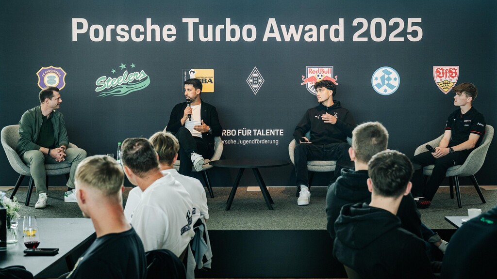 Die Verleihung der Porsche Turbo Awards nahm Markenbotschafter Sami Khedira vor. Gemeinsam mit ihm gaben auch Porsche-Junior Theo Oeverhaus und Bundesliga-Debütant Tiago Pereira Cardoso Einblicke in ihre Entwicklung und beantworteten Fragen der Preisträger. „Auch ich wollte bis zum Alter von zwölf Jahren Fußballprofi werden, aber dann hat die Leidenschaft zum Motorsport gesiegt. Ich habe hart um die Chance als Porsche-Junior gekämpft und möchte allen Preisträgern mitgeben, dass sie ihre Träume verfolgen sollen“, sagte der 20 Jahre alte Theo Oeverhaus, derzeit Führender in der Gesamtwertung des Porsche Mobil 1 Supercup. Tiago Pereira Cardoso war vor zwei Jahren selbst Turbo-Award-Preisträger. Der 19-jährige Torhüter erzählte von seinem Werdegang als Toptalent bei Borussia Mönchengladbach. (aum)