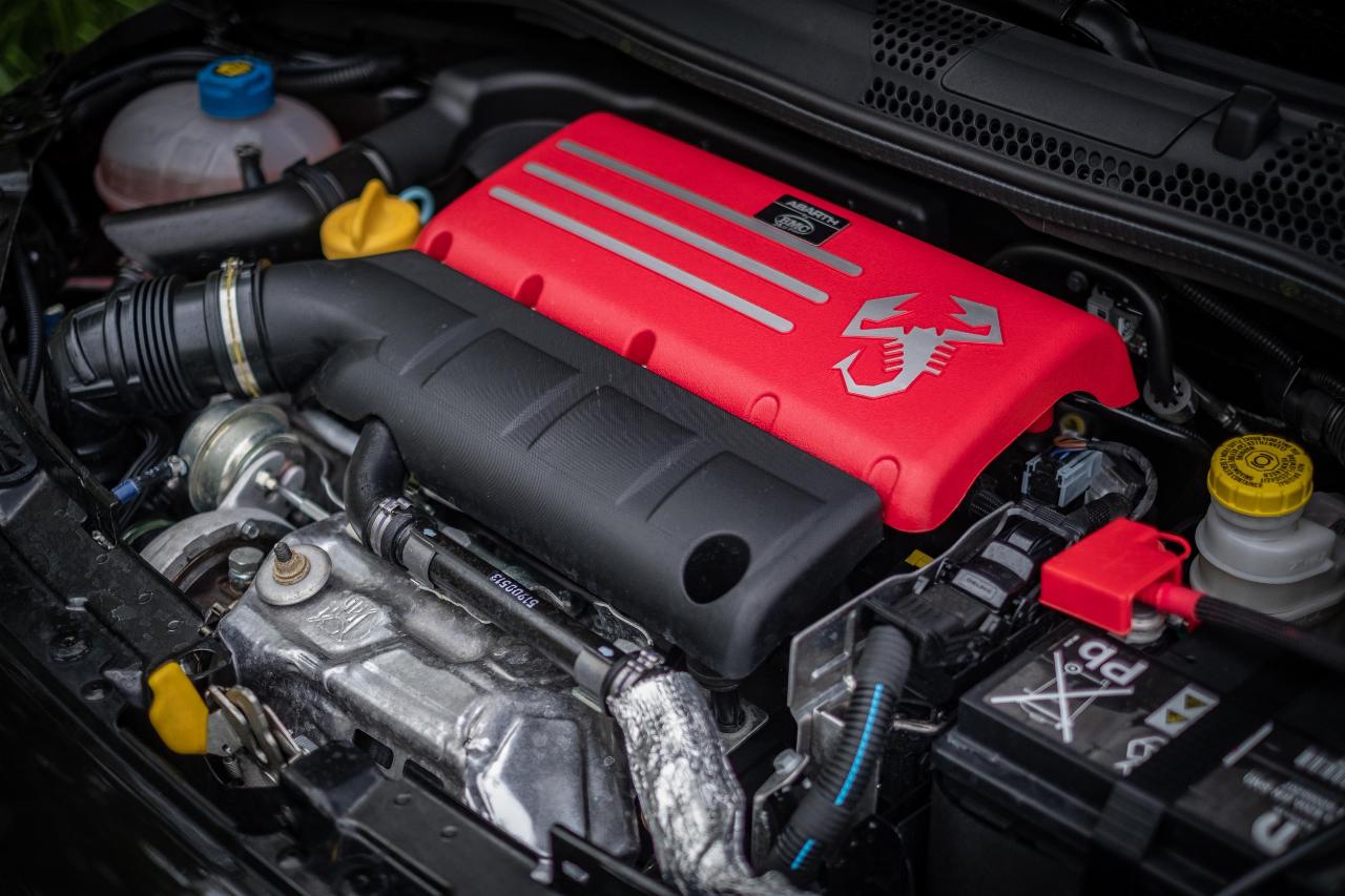 Die Geschichte des 695 Esseesse ist damit gewissermaßen schon zu Ende erzählt, denn der Abarth hat sich in seinen Grundfesten nicht verändert: 182 PS ermöglichen bei fahrerischem Können eine Zeit von 6,7 Sekunden auf Tempo 100 km/h, maximal 225 km/h können mit flach gestelltem Heckspoiler erreicht werden. Doch der Heckspoiler und das Sperrdifferential verhelfen dem zugrundegelegten 500er Fiat gemeinsam zu neuen Hochpunkten. Bei einem Anstellwinkel von 30 Grad zeigt sich bereits, wie sehr der Anpressdruck das Heck des kleinen Schwarzen herunterdrückt. Bis zu 60 Grad sind möglich, dann sollen bis zu 42 Kilogramm Anpressdruck anliegen. Durch diese Maßnahme wird in Kurven – insbesondere auch beim Anbremsen – mehr Sicherheit und Fahrspaß garantiert. Ob die 15 Kilogramm, die eine Aluhaube und Festkolbensättel sparen sollen, wirklich auffallen, ist wohl eher eine Glaubensfrage.