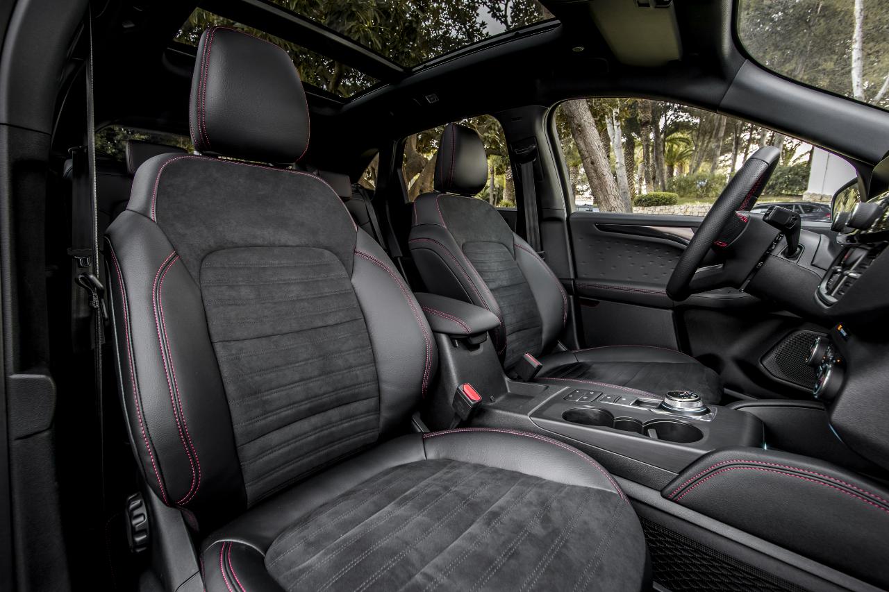 Vom Spiel der beiden Antriebe merken die Insassen nichts, der Wechsel zeigt sich höchstens auf dem übersichtlichen Display vor dem Lenkrad. Der Kuga zieht unabhängig von der aktiven Energie problemlos seine Runden und stellt den Menschen hinter dem Lenkrad nicht vor Probleme. Bei sportlicher Fahrweise, auch das ist dank der präzise arbeitenden Lenkung möglich, kommen höchstens die Sitze mit ihrem überschaubaren Seitenhalt als Spielverderber ins Spiel. Da hilft auch die serienmäßige Lendenwirbelstütze wenig. Doch dafür ist der Kuga auch nicht entwickelt worden. Vielmehr bewährt er sich als angenehmer Partner für die lange Strecke, und dank des großzügig bemessenen Radstands (2,71 Meter) herrschen sehr gute Platzverhältnisse. Bei Bedarf lässt sich die Rücksitzbank verschieben, wenn zusätzliches Volumen in der Gepäckabteilung gewünscht wird.