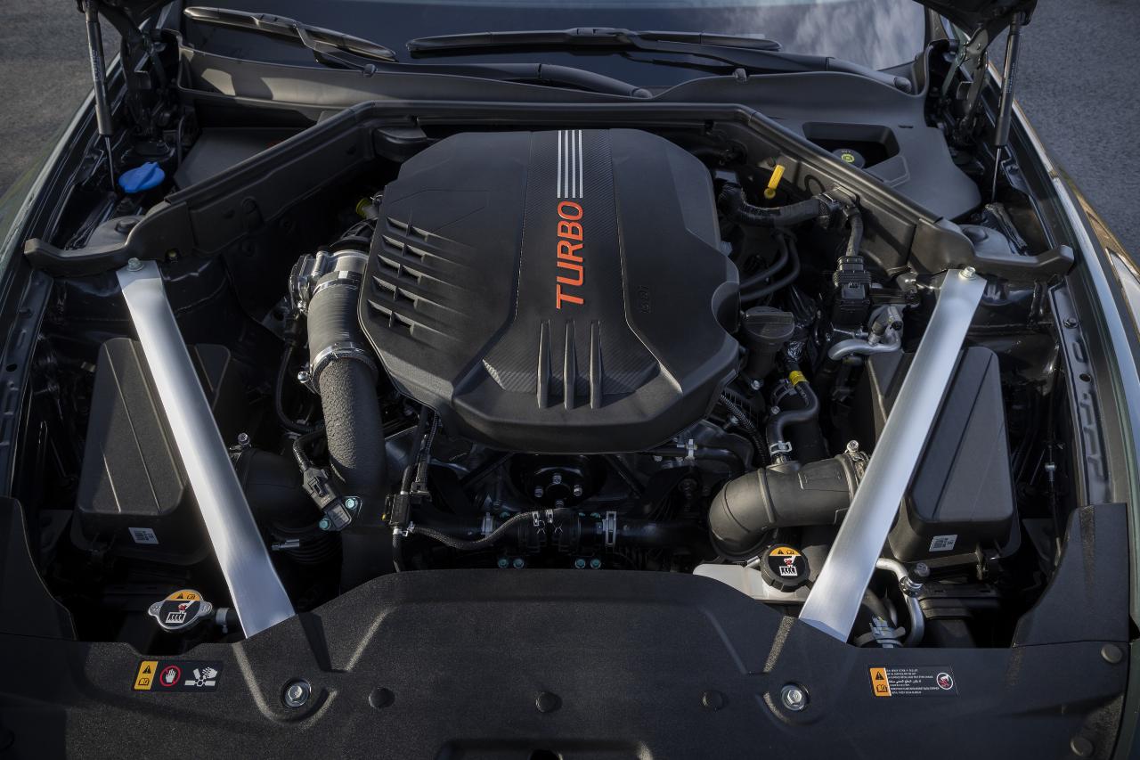 Unter der langen Motorhaube des Stinger arbeitet ein doppelt aufgeladener 3,3-Liter-V6-Benziner. Der Biturbo hängt lebendig am Gas und entfaltet sein maximales Drehmoment von 510 Newtonmetern schon bei frühen 1300 Umdrehungen in der Minute. Dementsprechend kraftvoll prescht der Stinger nach vorn. Wenn es sein muss, katapultiert der Koreaner seine Gäste in beeindruckenden 5,4 Sekunden auf Tempo 100, Schluss ist erst bei 270 km/h.