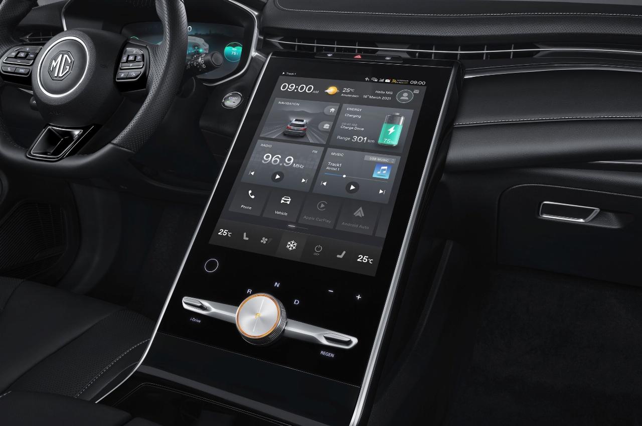 Über das große Infotainment werden sämtliche Fahrzeugfunktionen gesteuert. Trotzdem braucht man nichts zu befürchten, da der gigantische Bildschirm übersichtlich gestaltet wurde und sich über die üppig dimensionierten Kachel-Symbole selbst während der Fahrt noch ablenkungsfrei bedienen lässt. Viele Funktionen lassen sich zudem über die Sprachsteuerung aufrufen. Sollte Raumtemperatur mal nicht stimmen, lässt sich die Klimaautomatik auch ganz bequem und zuverlässig per Zuruf nachregulieren. Und bei jedem Neustart informiert die freundliche Stimme im MG sogar alle Mitreisenden über den lokalen Wetterbericht. Eine nette Geste, die man gerne entgegennimmt.