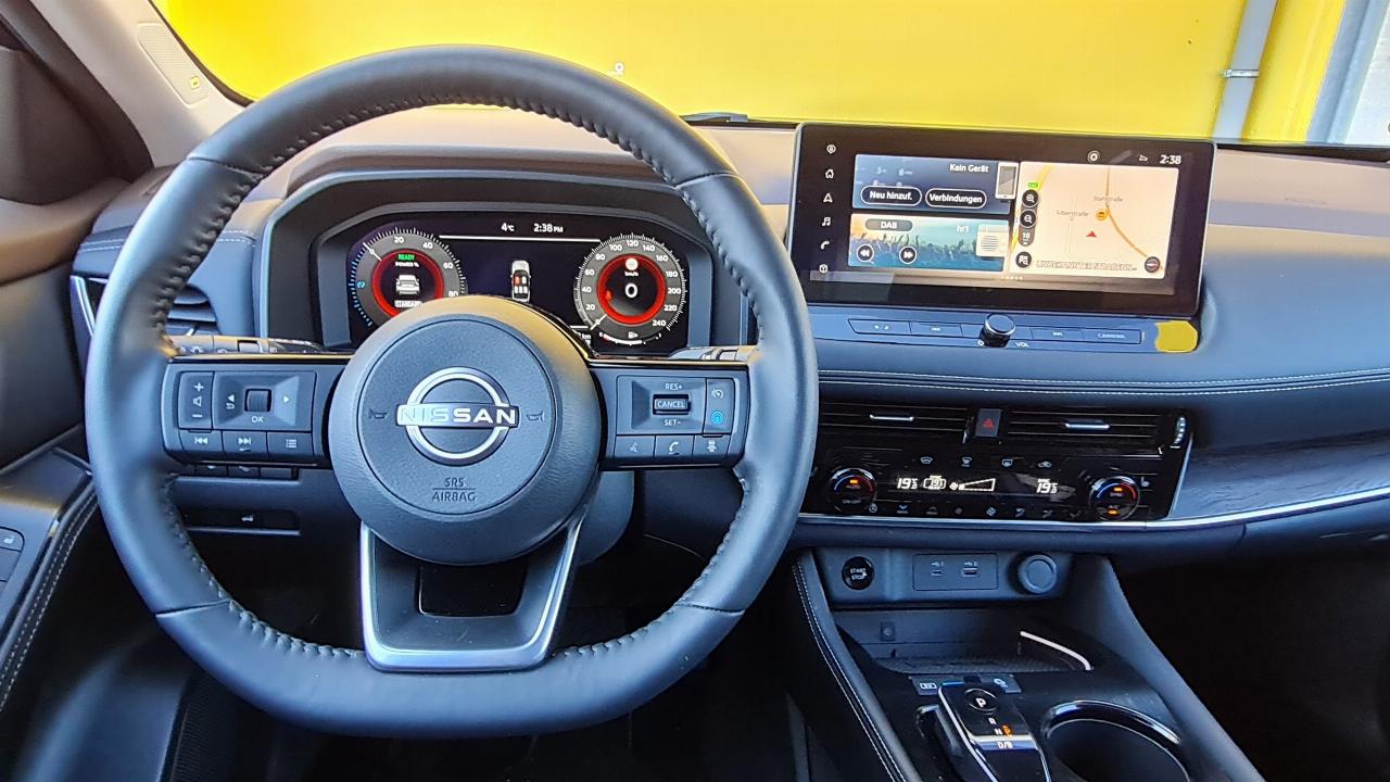 Die erlaubt bei gutem Füllstand sogar rein elektrisches Fahren über einige 100 Meter. Deshalb hat der X-Trail auch alle Features eines Elektroautos bekommen, so etwa das akustische Warnsignal beim Rangieren. Auch das Fahren im E-Pedal-Modus ist möglich. Dann rekuperiert das System mit maximaler Kraft und erlaubt es, den Nissan bei vorausschauender Fahrweise ohne Bremse zu bewegen. Nur eine Ladebuchse findet sich nicht an der Karosserie – getankt wird, wie wir es alle noch kennen, an der Zapfsäule für Superbenzin.