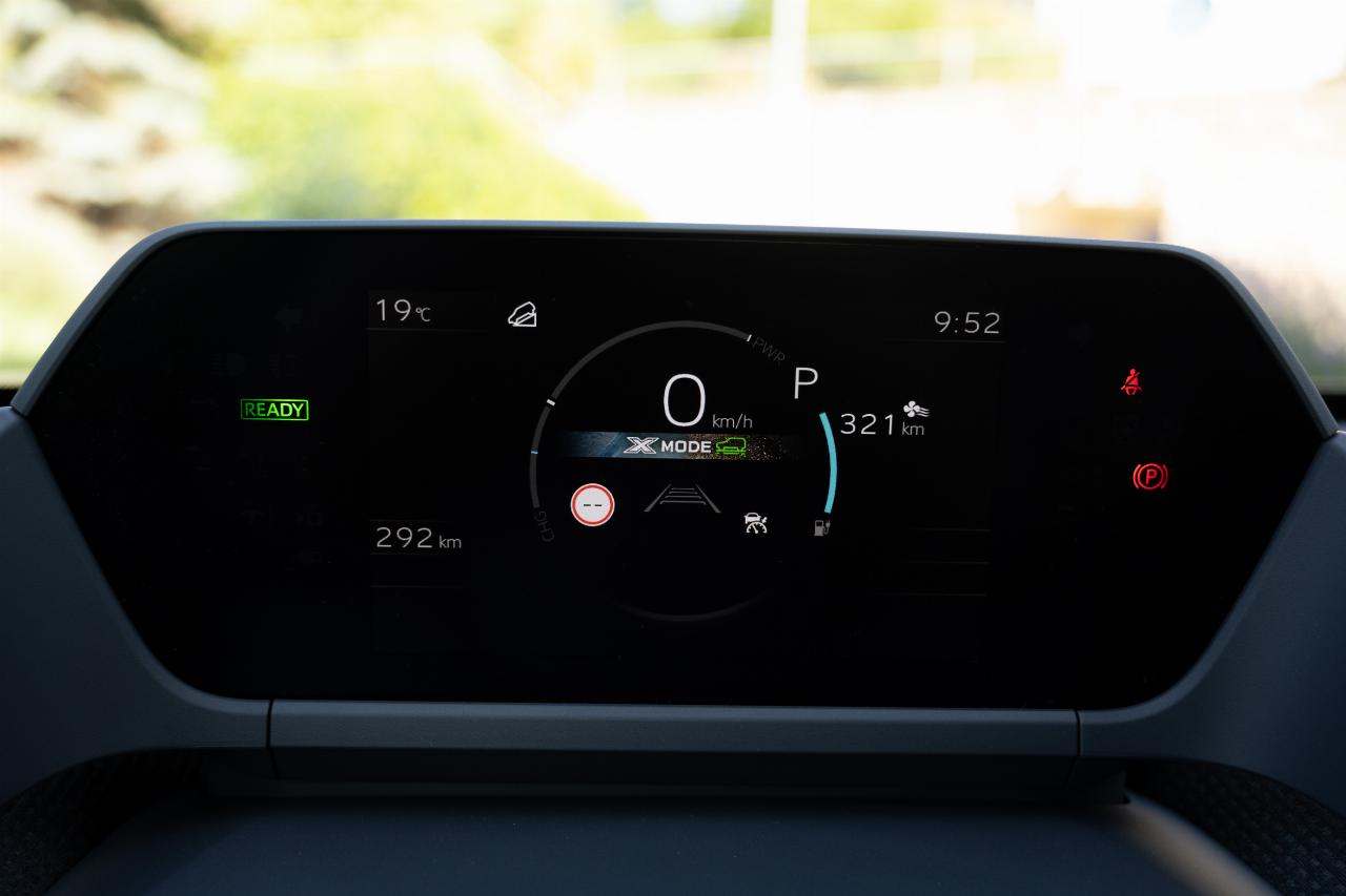 Die Fahrprogramme lassen dem Fahrer die Wahl zwischen „Eco“, „Standard“ und „Sport“, wobei man sich auch beim Subaru fragt, ob das wirklich sein muss? Die 160 kW Spitzenleistung der beiden Motoren reichen auch in der Öko-Stufe für ausreichend starkes Beschleunigen und rasches Vorwärtskommen. Bei 160 km/h setzt der Regler ohnehin die rote Linie. Dazu kommt das bekannte X-Mode-Allradsystem mit seinen verschiedenen Regelstufen bis ca. 40 km/h und eine vierfach einstellbare Rekuperation plus – keine schlechte Idee – einer Extra-Taste in der Mittelkonsole fürs One-Pedal-Fahren. ESP und Traktionskontrolle lassen sich für Geländefahrten abschalten.
