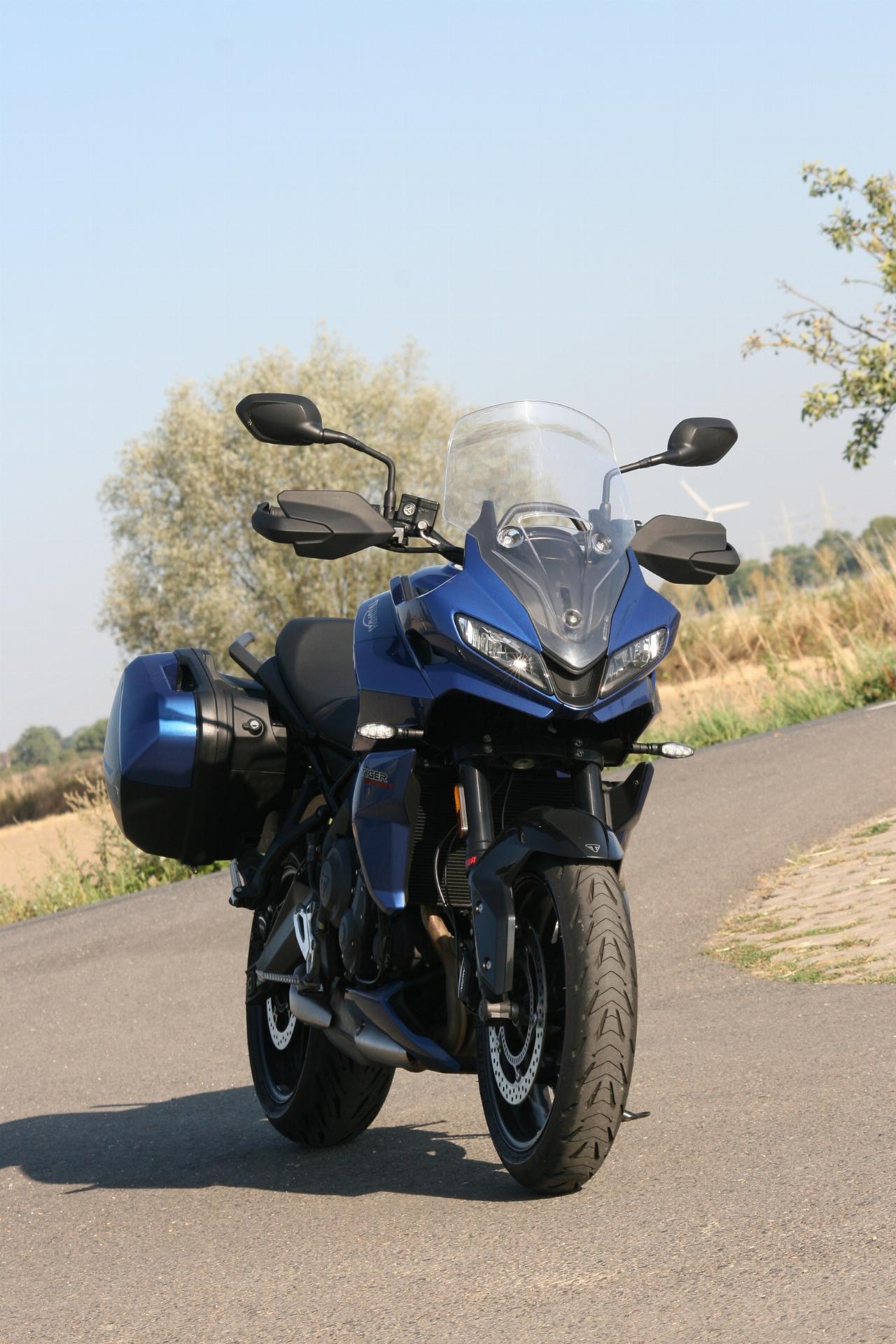 Der aus der Trident bekannte 81-PS-Dreizylinder hat in allen Lebenslagen ordentlich Druck auf dem Kessel und feuert ab etwa 6000 Umdrehungen noch ein bisschen nach. Der Fahrer hat die Wahl zwischen den Modi Road und Rain mit verstellbarer Traktionskontrolle. Warum diese sich aber auch noch abschalten lässt, entzieht sich unserer Kenntnis, denn ein Adventure-(Sport)Bike, wie es der Hersteller proklamiert, können wir hier wahrlich nicht erkennen. Das Sechs-Gang-Getriebe erfreut durch kurze Schaltwege, das Zubehörprogramm hält noch einen Quickshifter parat. Der Schaltblitz ist individuell konfigurierbar.