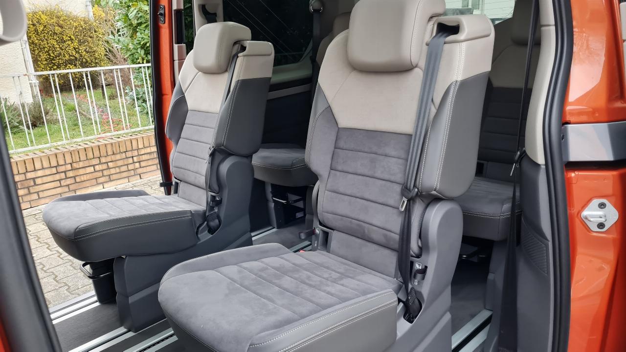 Der Innenraum ist luftig und hell gestaltet, statt mit ödem Grau zu langweilen, funkelt die Armaturentafel in hellen Farben und munteren Mustern. Hinten gibt es nur noch Einzelsitze. Die lassen sich stufenlos verschieben und modular anordnen. Unter ihren klappbaren Sitzflächen gibt es Staufächer. Beheizen lassen sie sich auch, der elektrische Strom wird über die Befestigungschienen geliefert, in denen sie in nahezu jede denkbare Position geschoben werden können. Das Stellungspiel ist kaum weniger variantenreich als das Kamasutra. Rund 26 Kilogramm wiegt jeder Sessel, das ist deutlich weniger als früher und erleichtert das Ausbauen des Gestühls. Oben wird als Sonderausstattung ein Panoramadach angeboten, eine kleine Hommage an den Samba-Bus mit seinen Dachfenstern aus den Sechzigern.